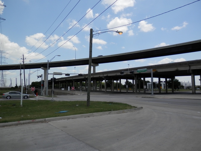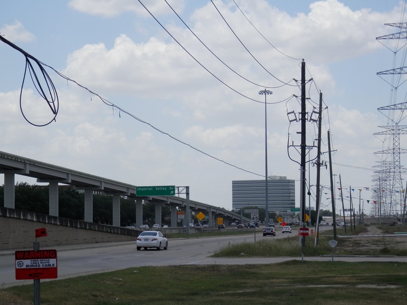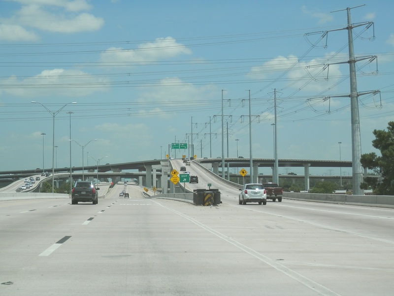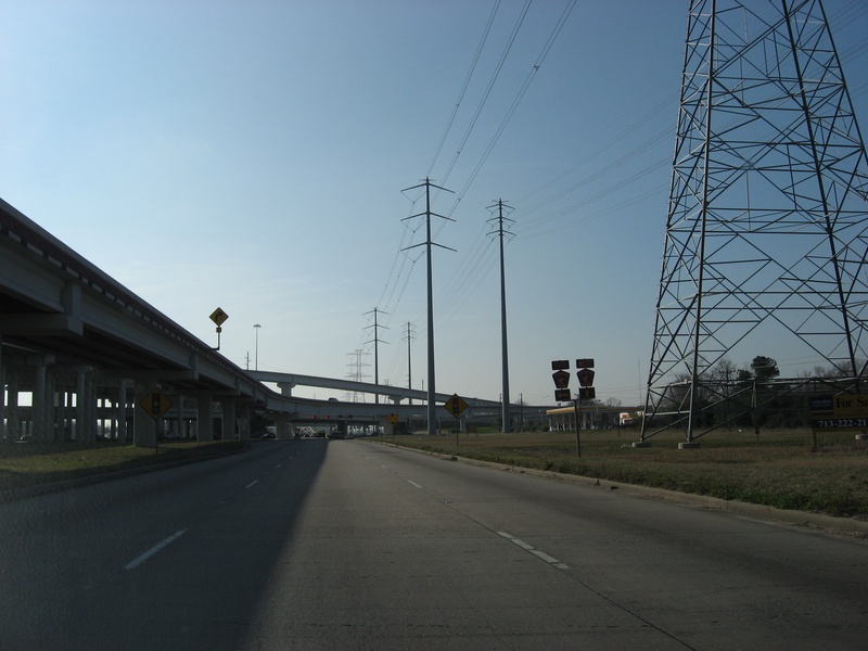 * South of Memorial Dr., the tollway right of way cut right through an existing neighborhood, creating several dead ends on Figaro and Traviata St. This is easy to miss while driving along the frontage roads, but residents of Figaro and Traviata who lived there before the construction of the tollway might have a different story to tell about their neighborhood. The street known as Boheme Dr. was left open, and is now the point in which the southbound frontage road briefly ends, and transitions to the east side of the freeway for some distance. This complicated and confusing arrangement is probably the best working scenario that HCTRA could come up with to result in minimal impact on the nearby neighborhoods. To this day, the design has yet to be improved upon.
