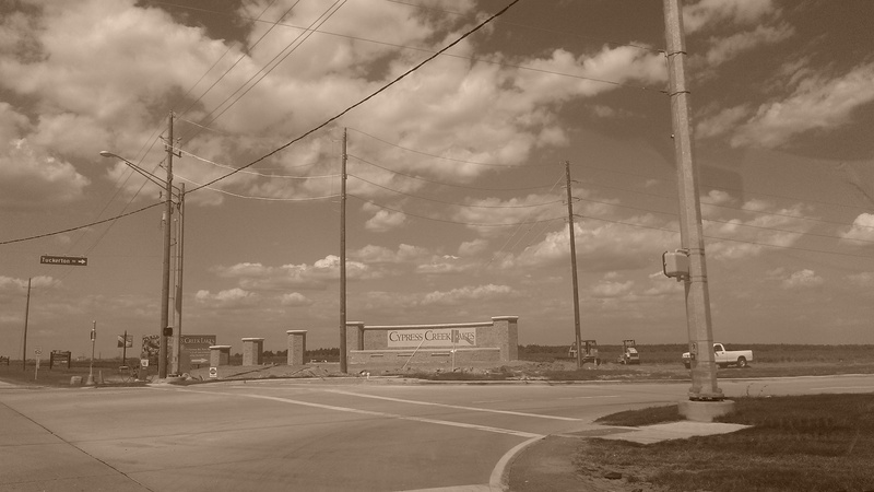 (Above photo: Fry Road at Tuckerton, entrance to Cypress Creek Lakes community, August 2012)