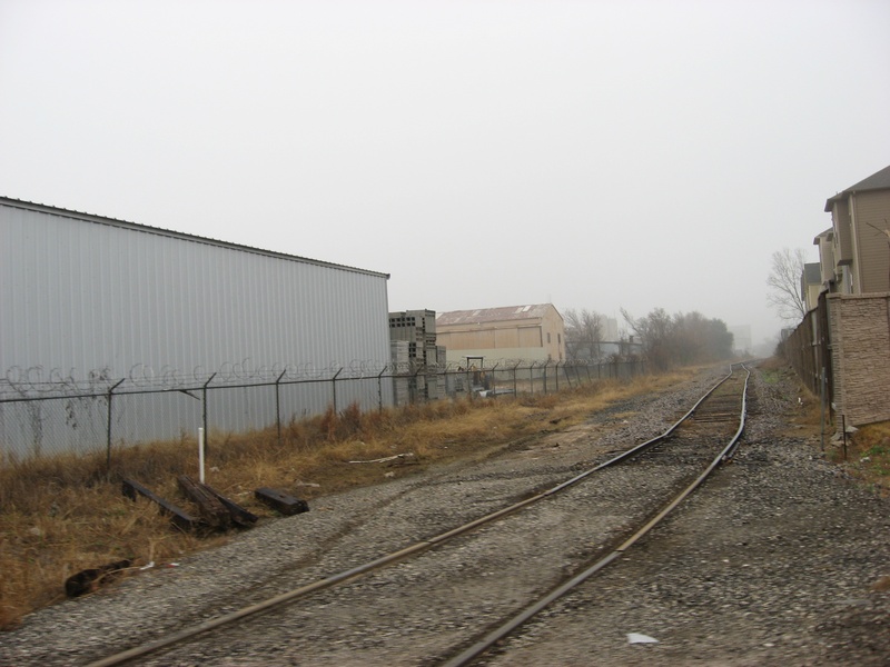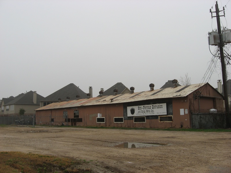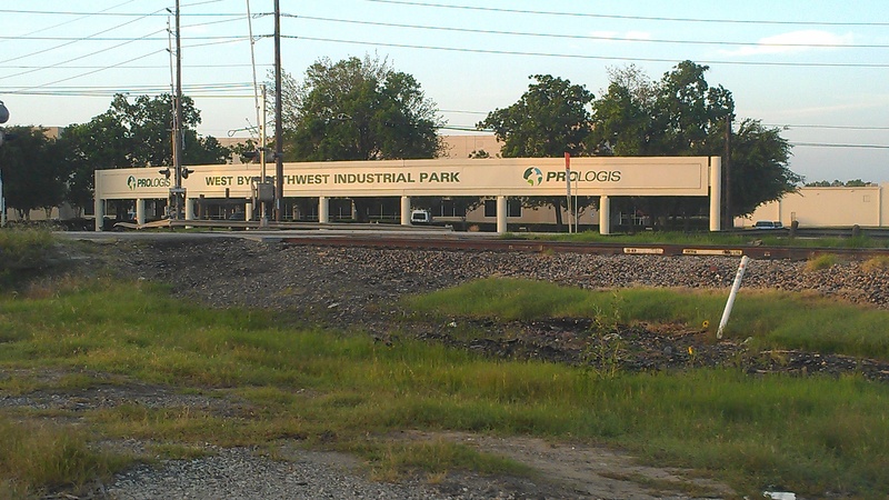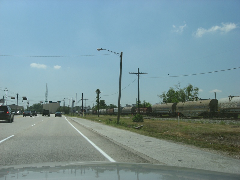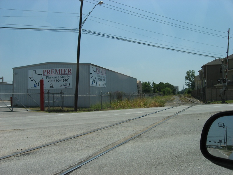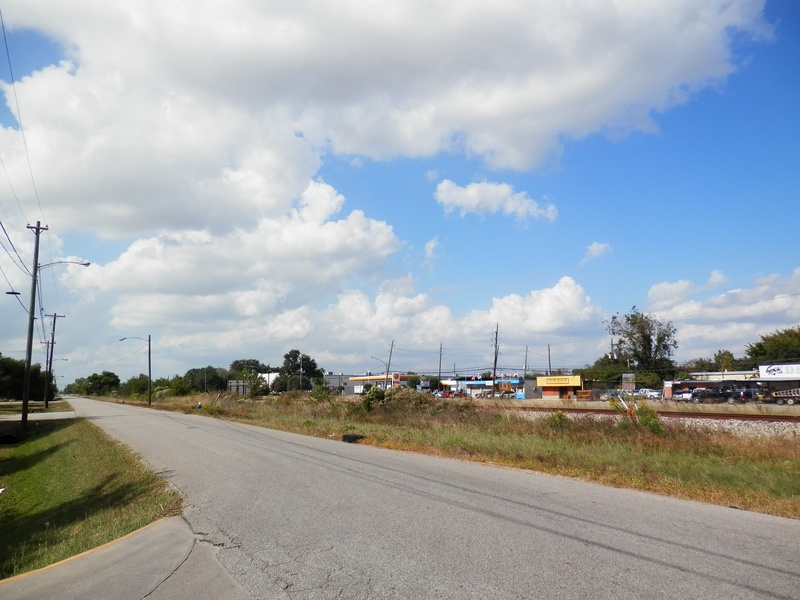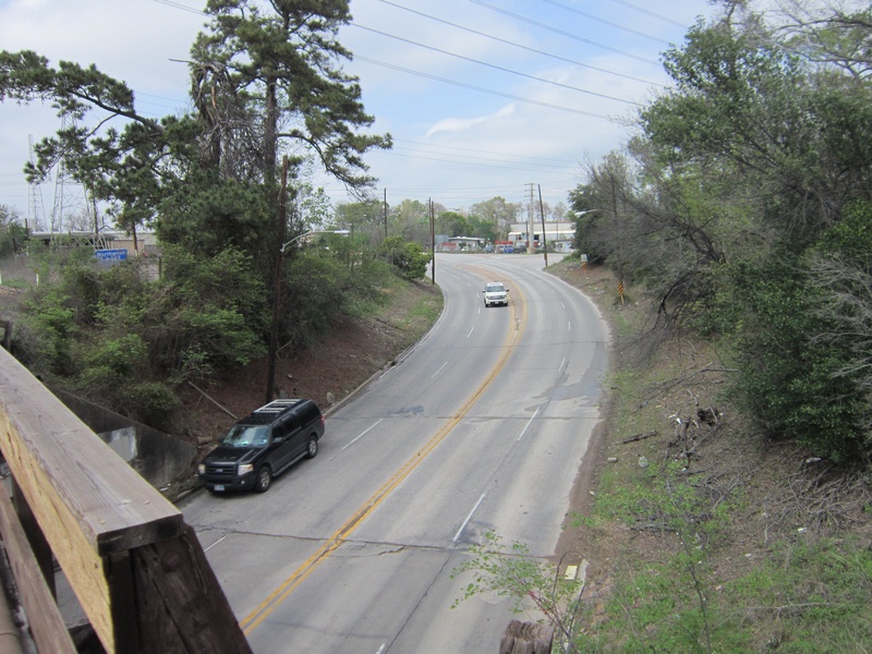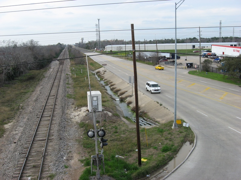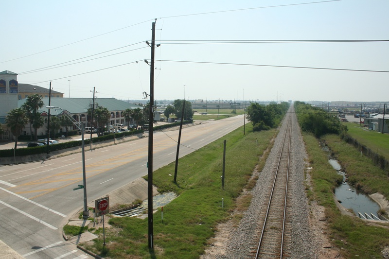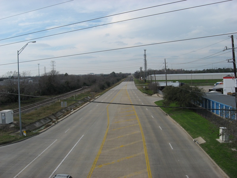 May 2013a 034.jpg : An eastward view of Hempstead Rd. and the parallel railroad corridor from SH-6, May 2013.
