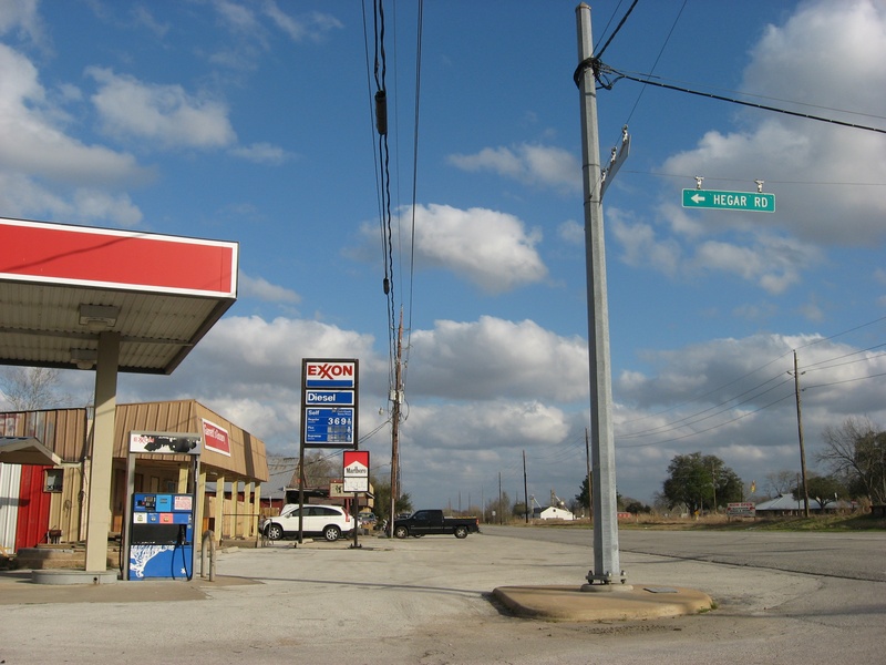 HH (142).jpg : Intersection of Hempstead Rd. and Hegar Rd. in Hockley, Tx, Feb. 2011. This Exxon station/corner store, which has since closed, was once a popular stop for travelers on Hempstead Rd. heading to places like Austin. This intersection was bypassed by the 290 main lanes during the late 1990's