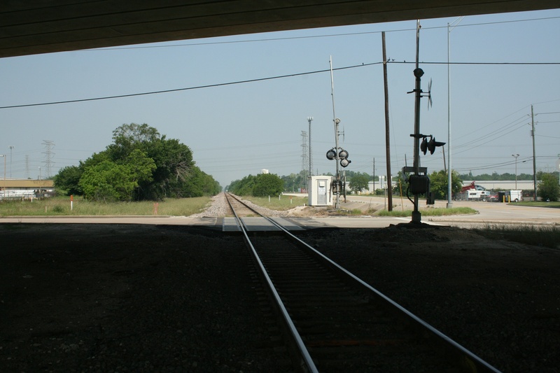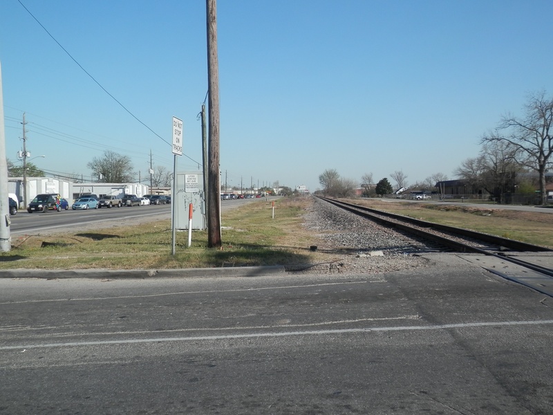 May 2013a 027.jpg : The railroad crossing at SH-6 and Hempstead Rd., facing east, May 2013.