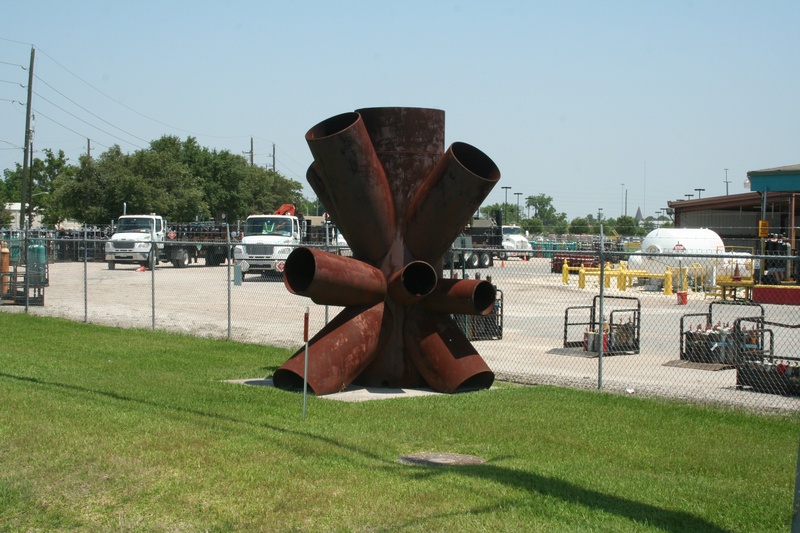 May 2013a 039.jpg : This is the point at which Hempstead Rd. ends, and the 290 frontage road begins. The facility to the right was previously known as Daniel Valve, though the building has been around since at least the early 1960's. Right at the entrance to the facility, Hempstead Rd. ends, and merges seamlessly with the 290 eastbound frontage road.