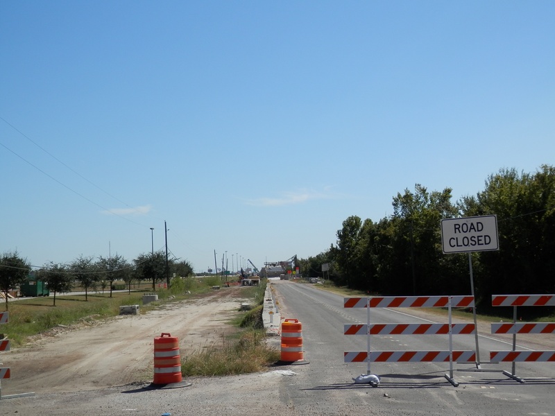 Oct 2015a 066.JPG : Hempstead Road, facing back towards the SH-6 overpass, Oct. 2015. Construction on a new direct connector ramp is in progress.