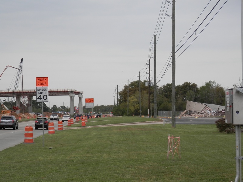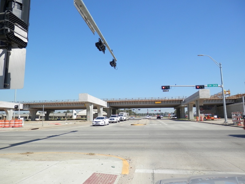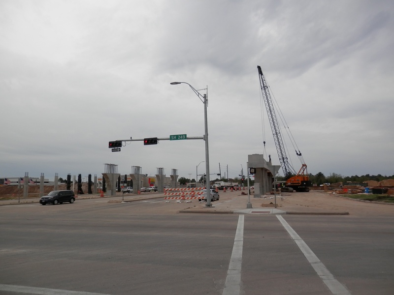 Oct 2014a 022.JPG : Intersection of SH-249 and Boudreaux, facing east across the freeway during construction. Northbound lanes are in place.