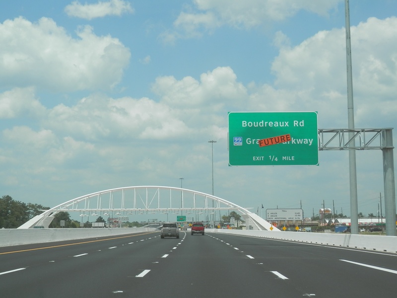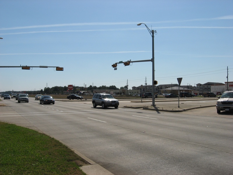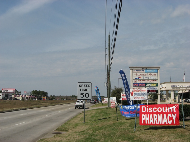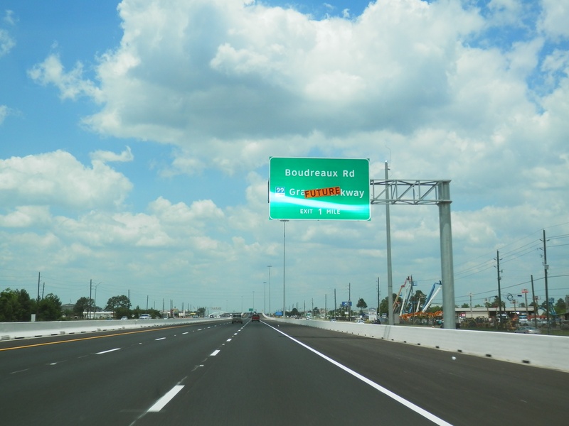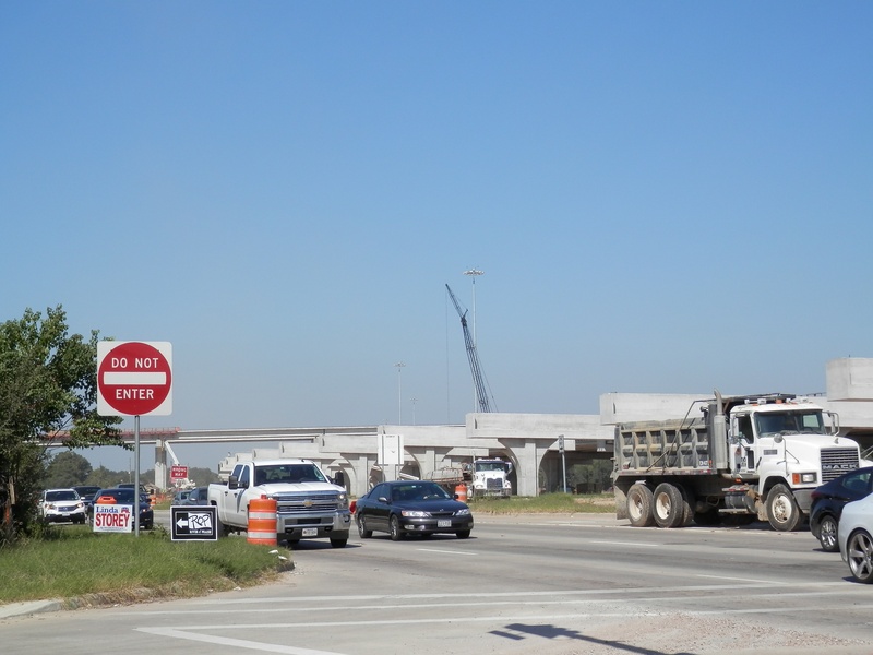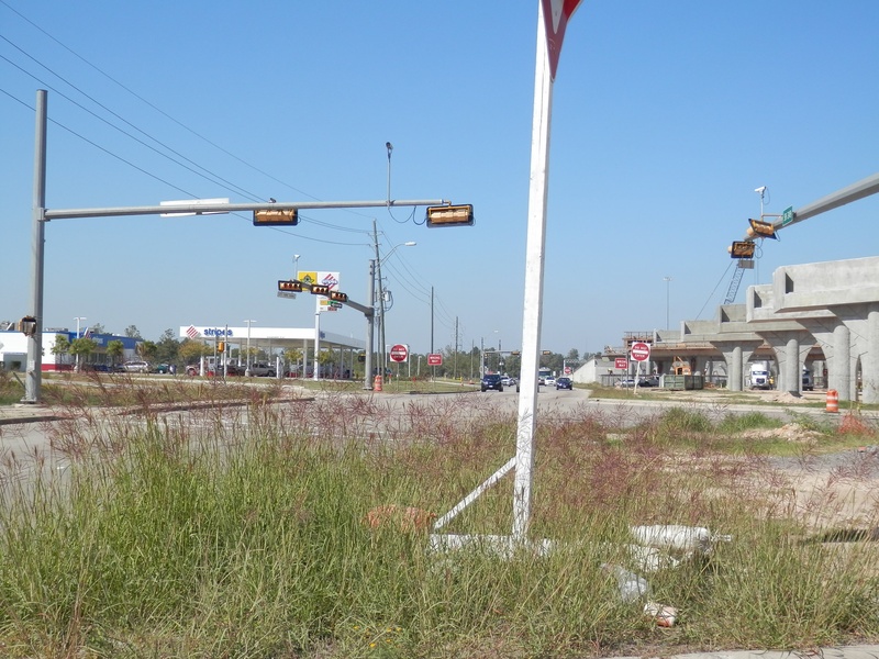 Oct 2014a 029.JPG : Facing south along the 249 frontage roads from the old Boudreaux alignment.