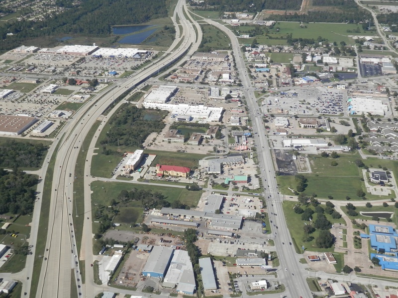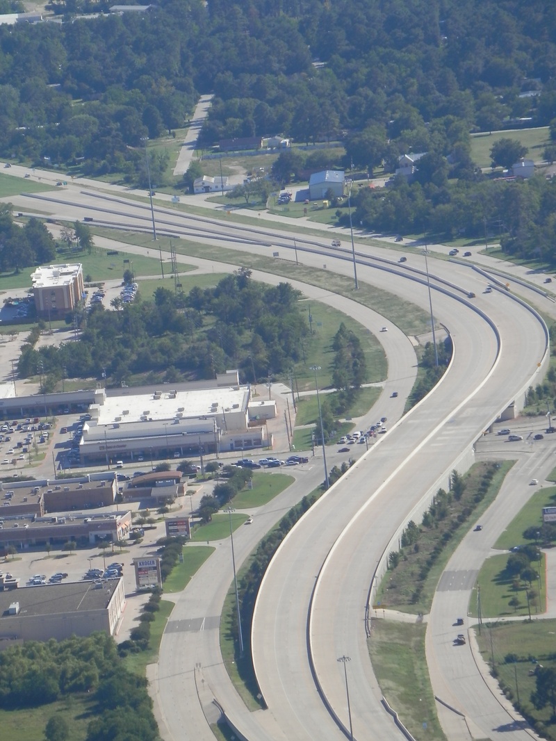Oct 2013a 061.jpg : Aerial photo of SH-249, the main lanes that curve around Tomball to the west.