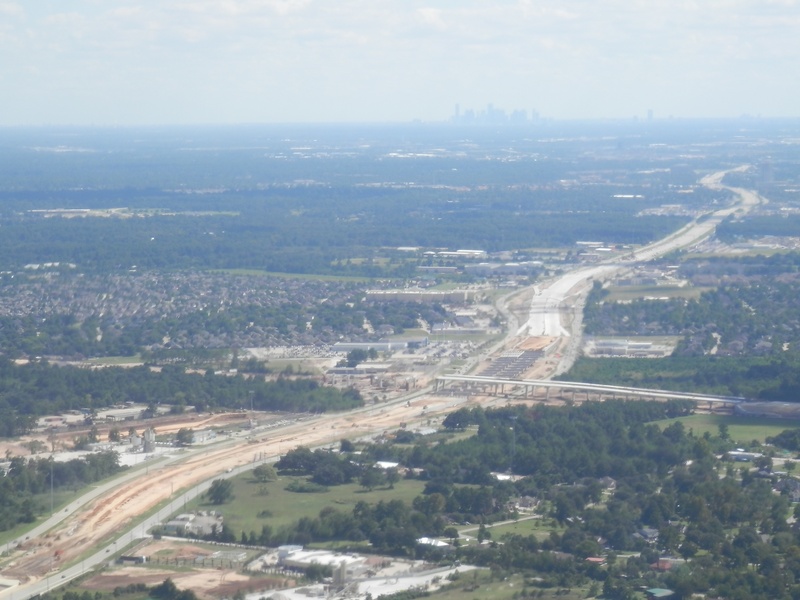 Oct 2014a 008.JPG : Aerial photo facing south along SH-249 during construction, with the new Grand Parkway crossing over it.