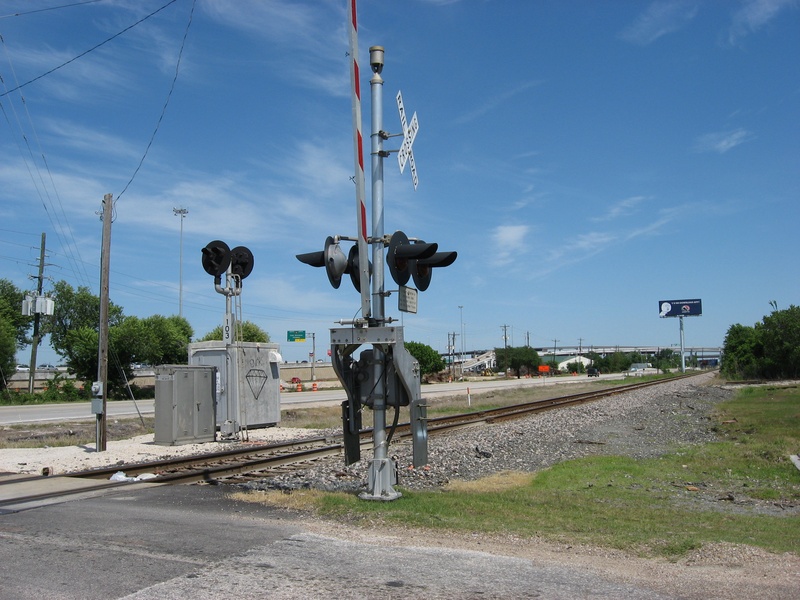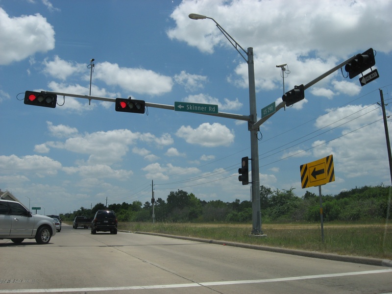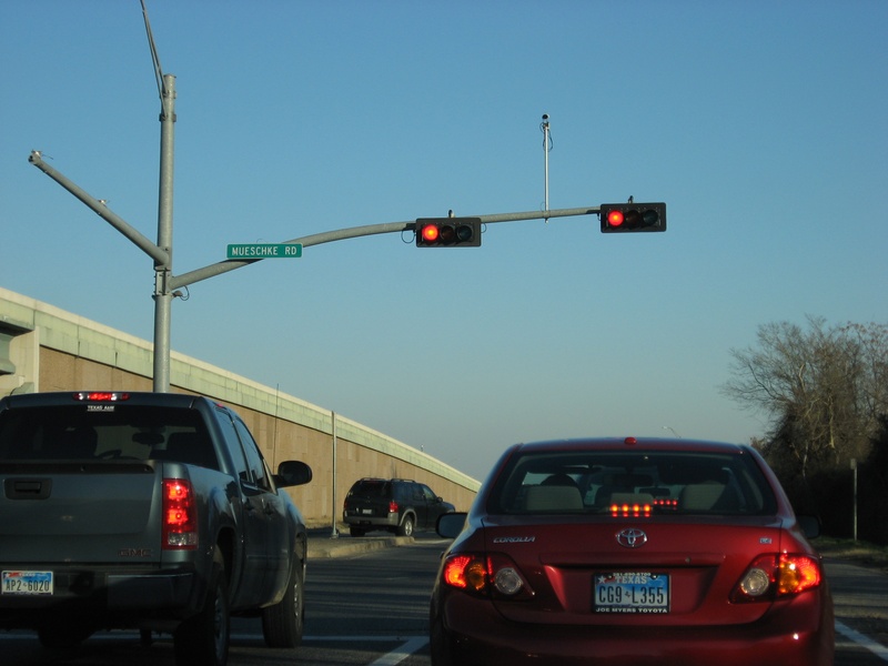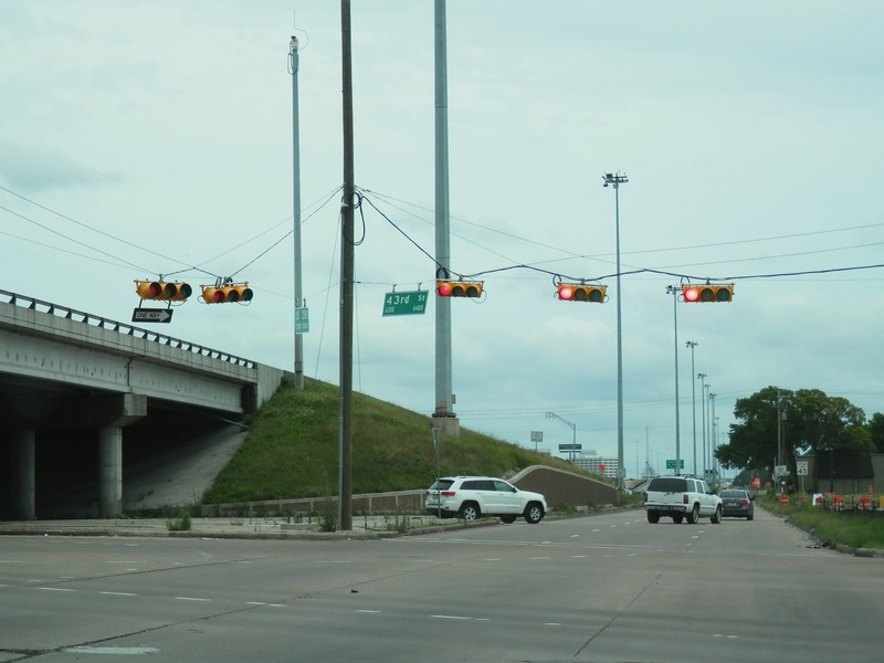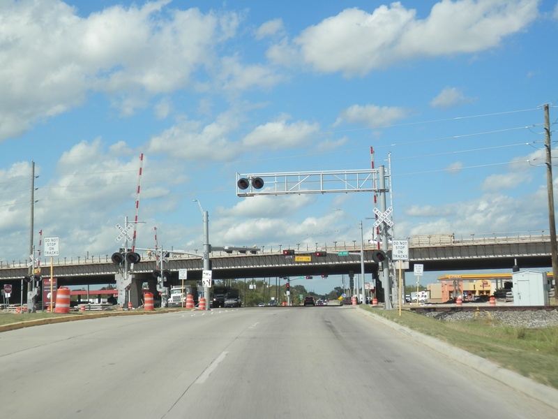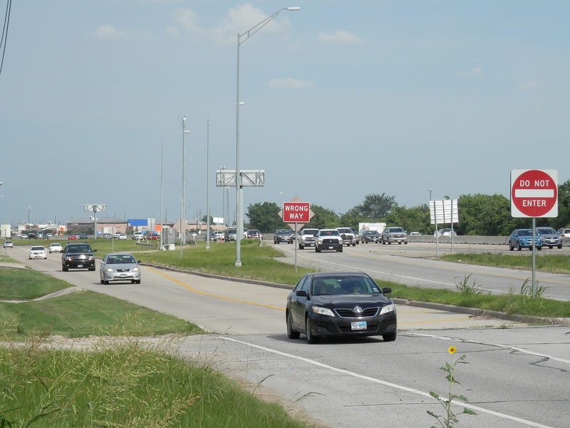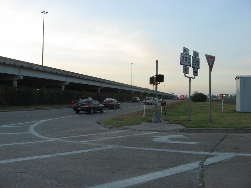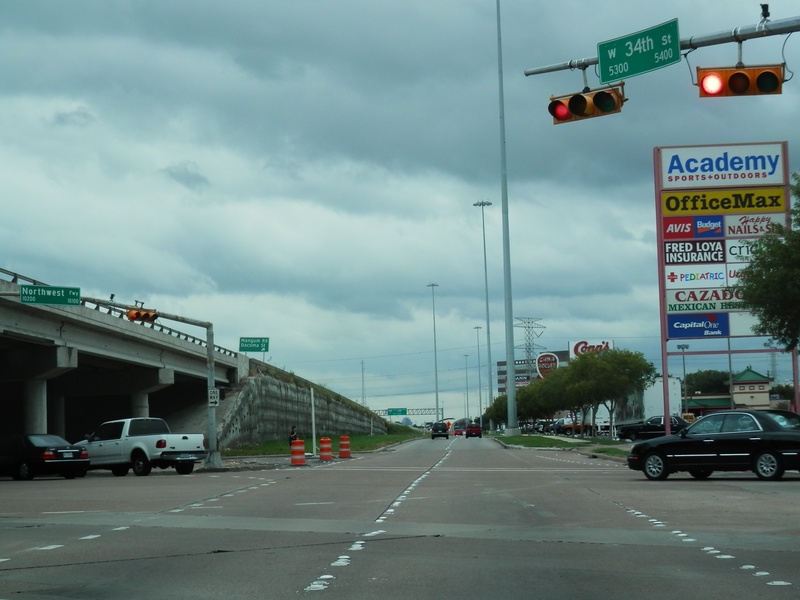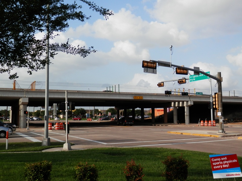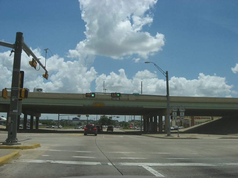 Aug 2012a 111.jpg : The 290 frontage road at W. 18th St. (where the cars are crossing), facing due north.