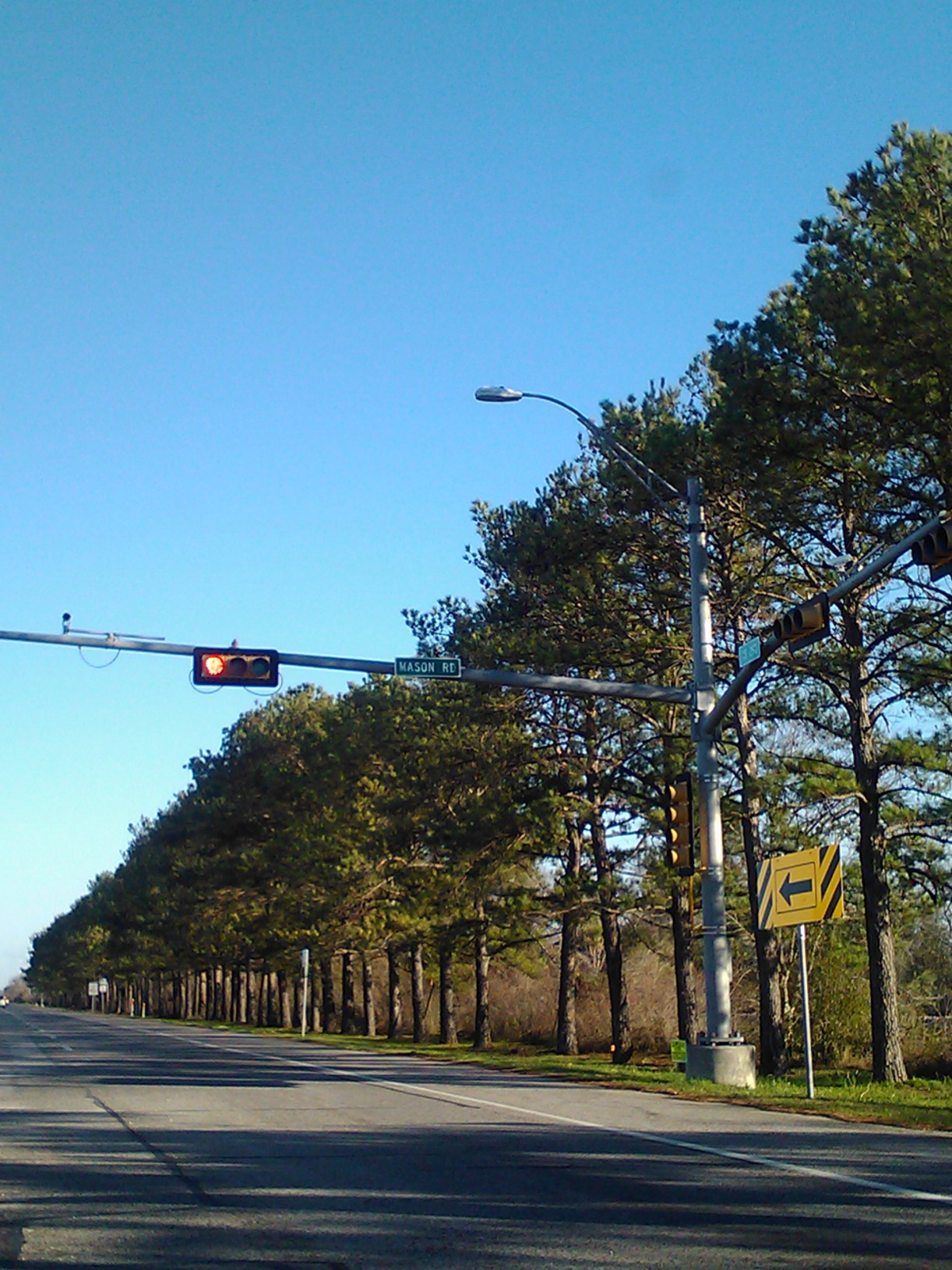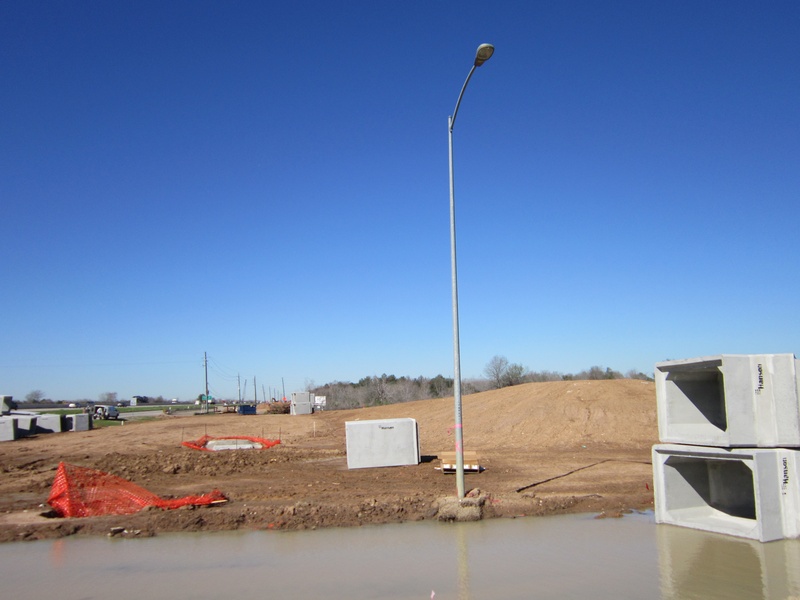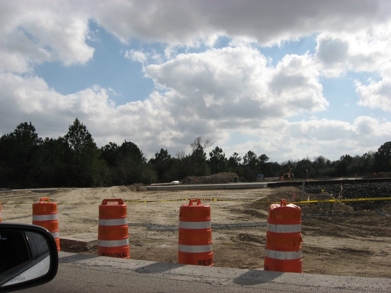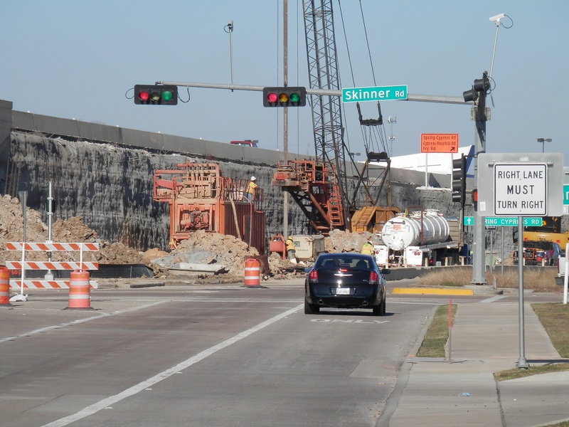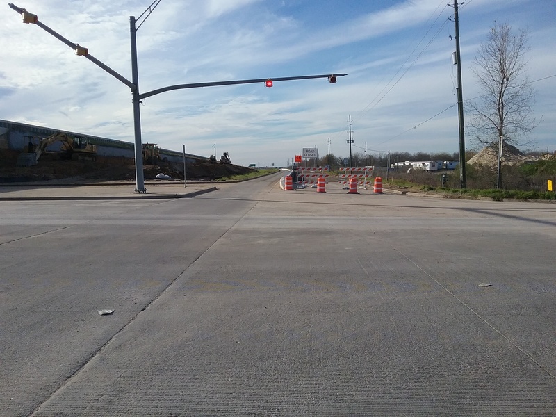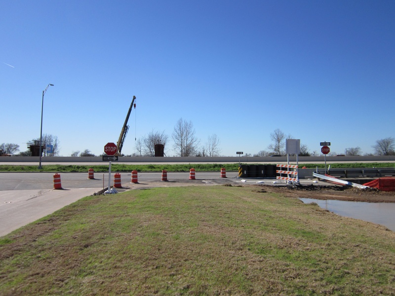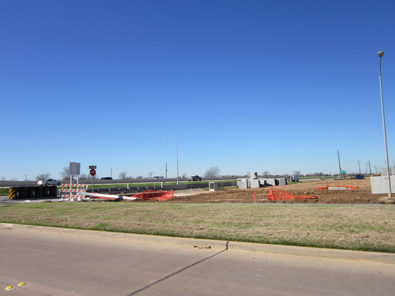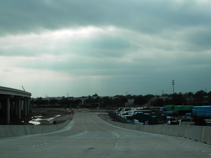 Feb 2013a 057.jpg : The new exit ramp from 290 to Hempstead Rd. (through the old parking lot) is now open. This photo was taken sitting at the newly installed intersection at Hempstead Rd., facing east where the direct connector ramp will eventually pass over Hempstead Rd.