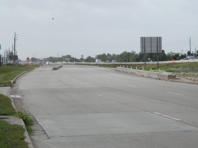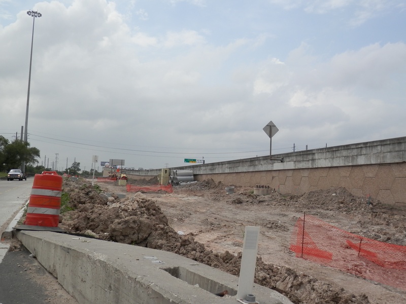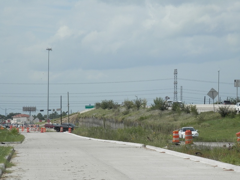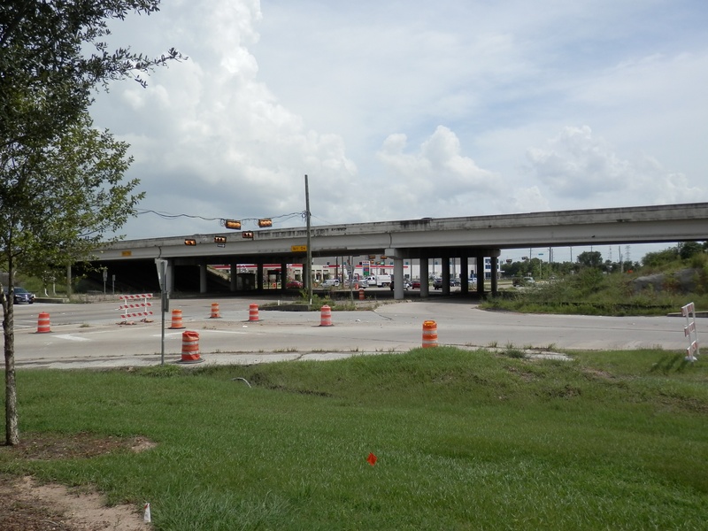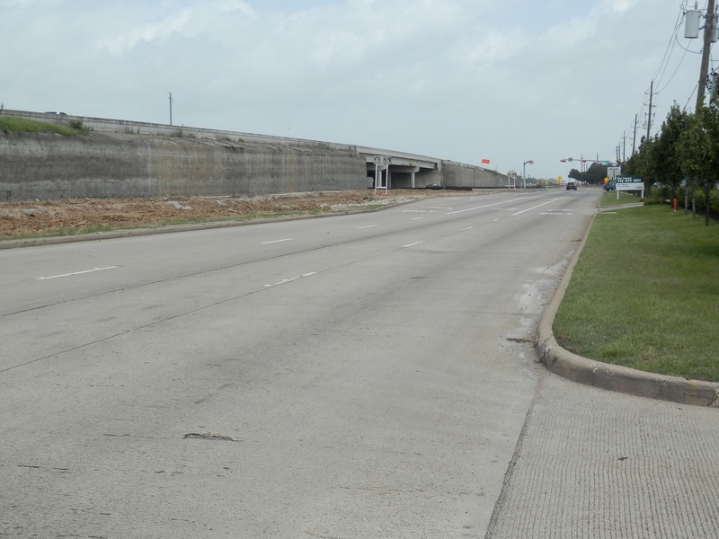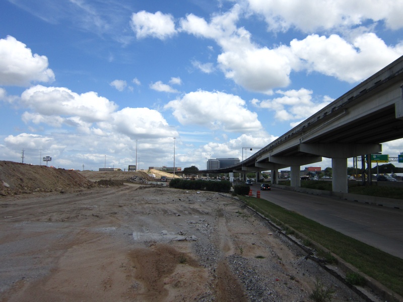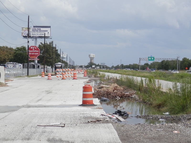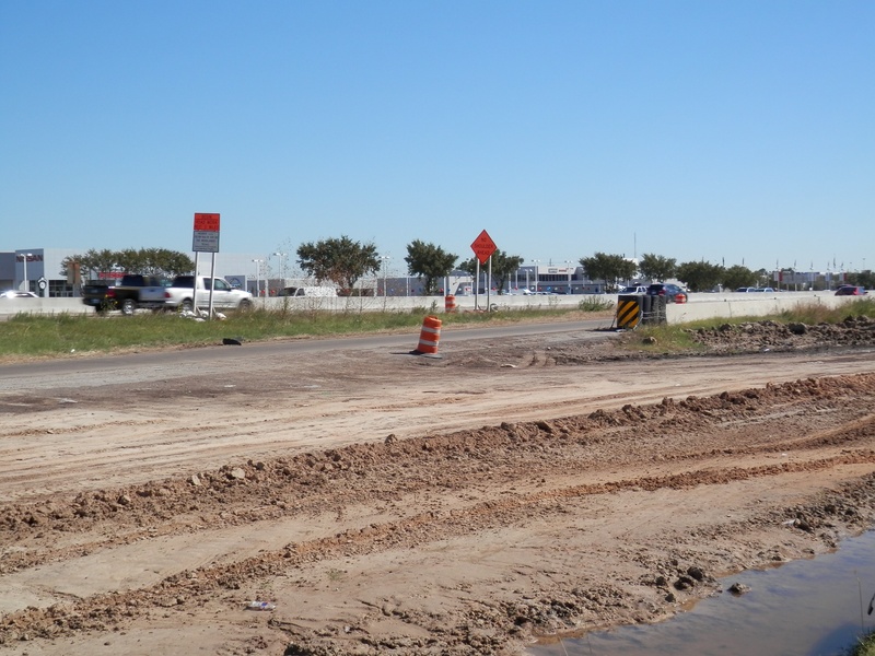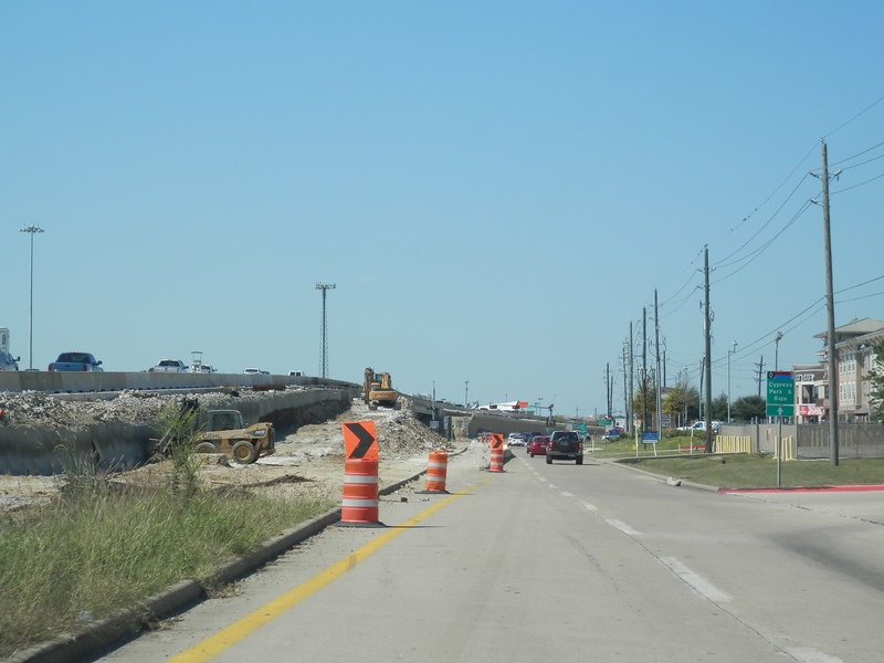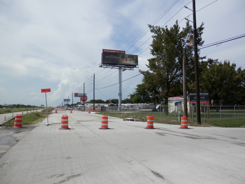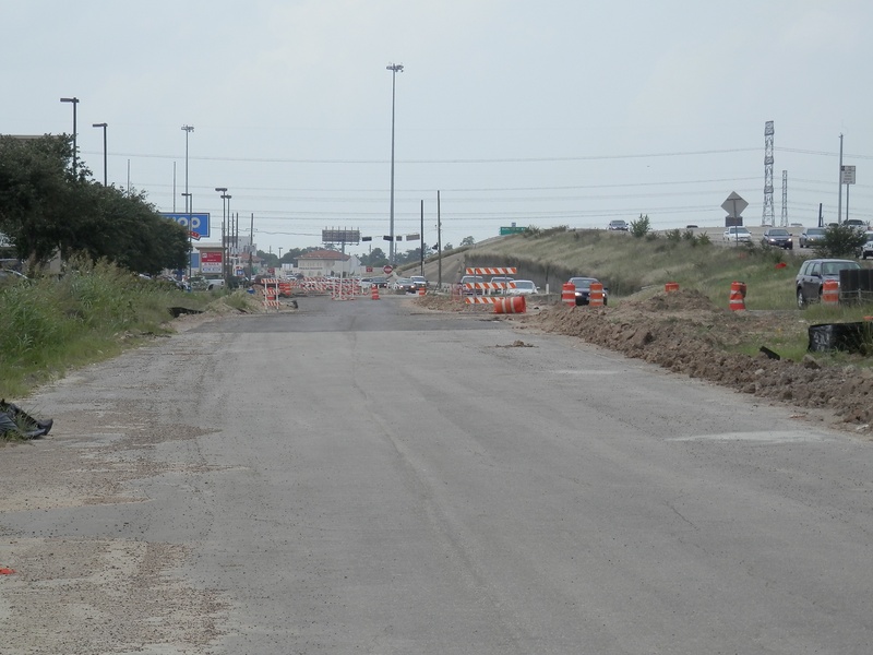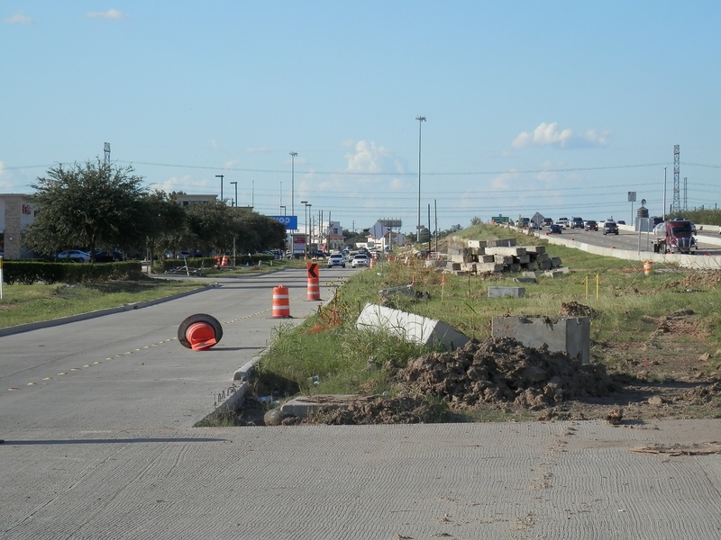 Aug 2012a 109.jpg : Facing south along the 290 frontage road where the new exit ramp to Hempstead Rd. is beginning on the right.