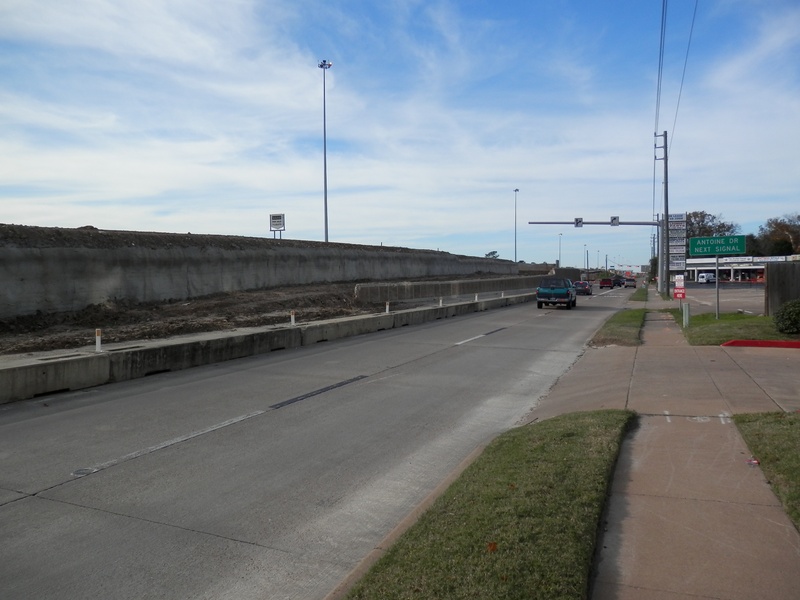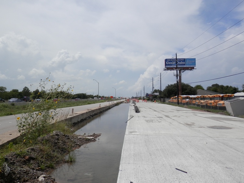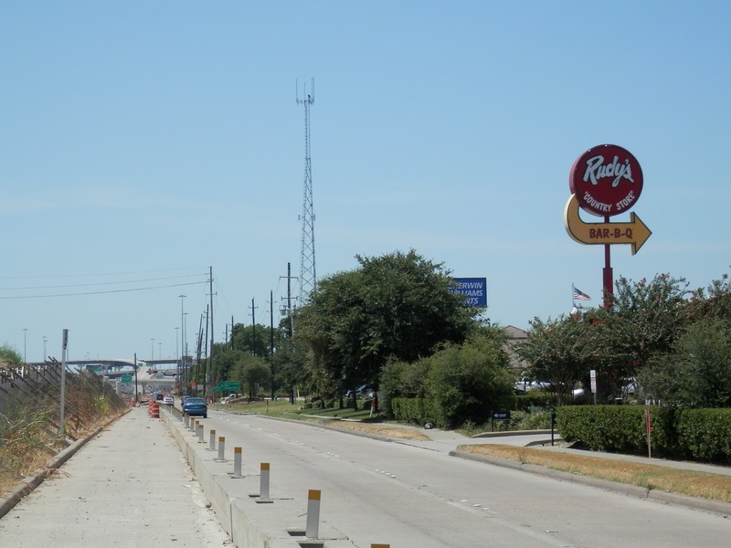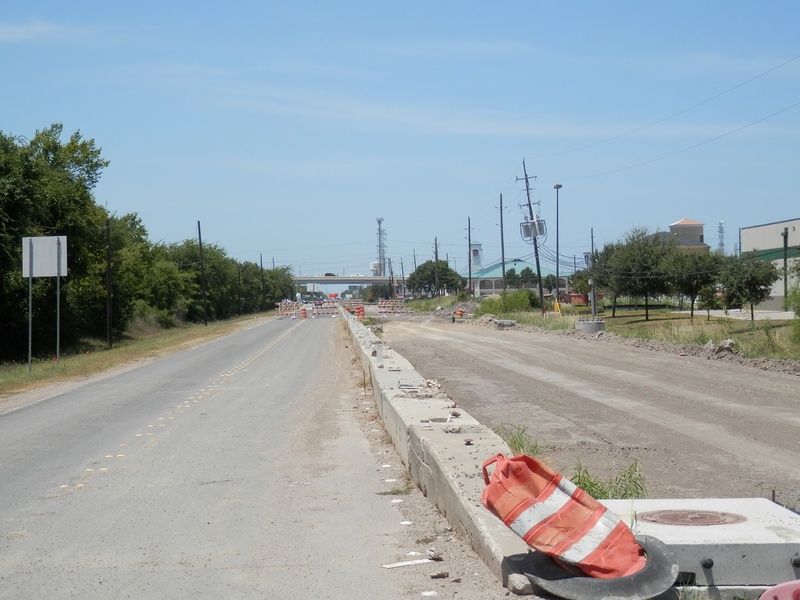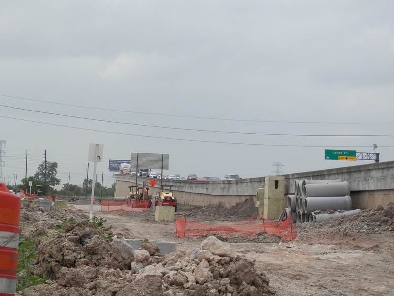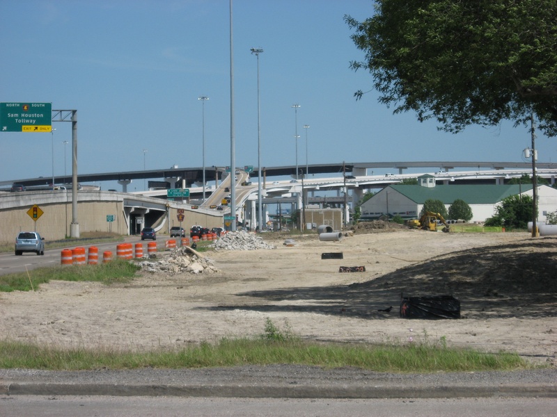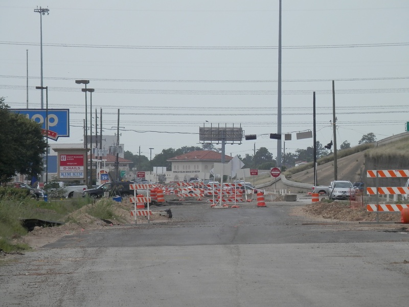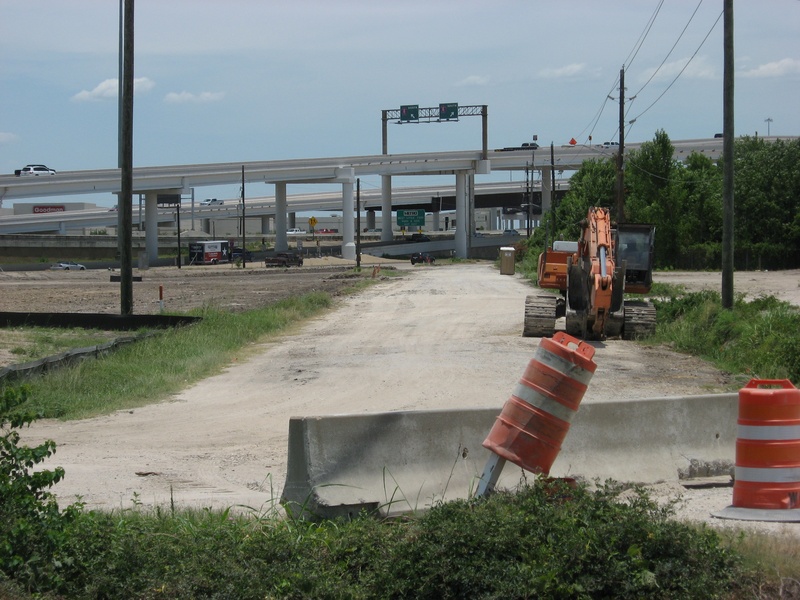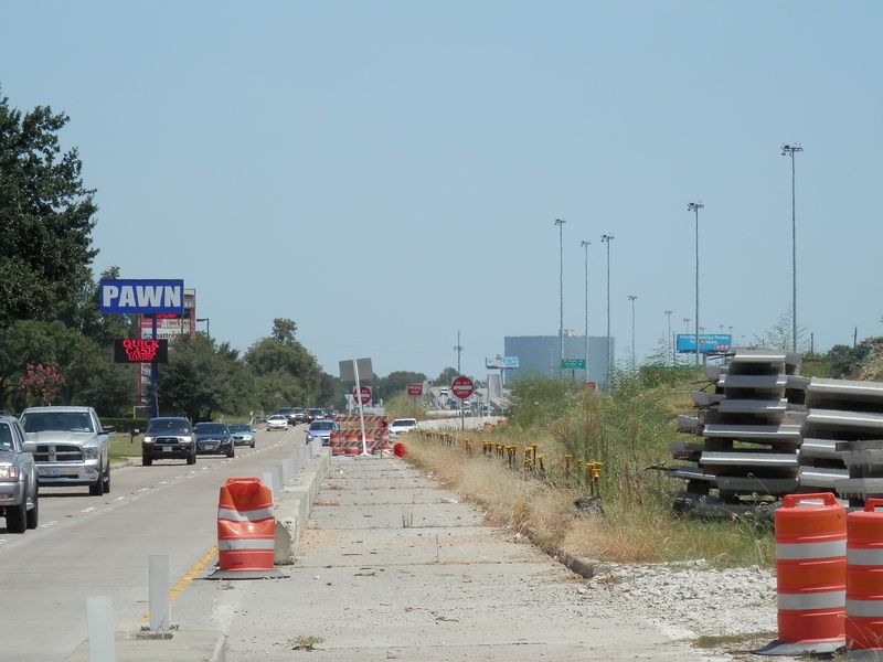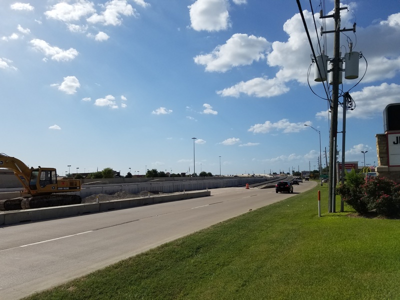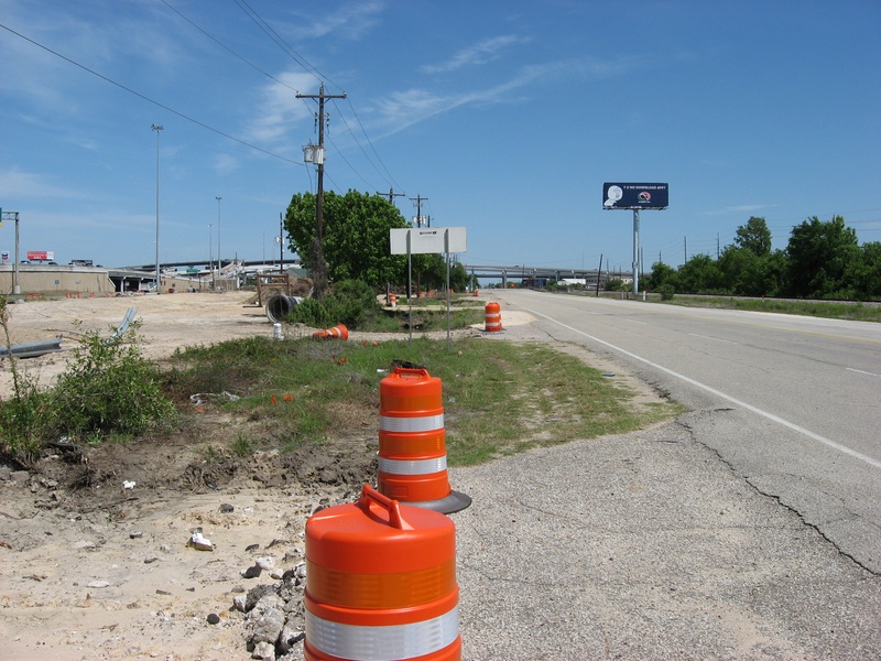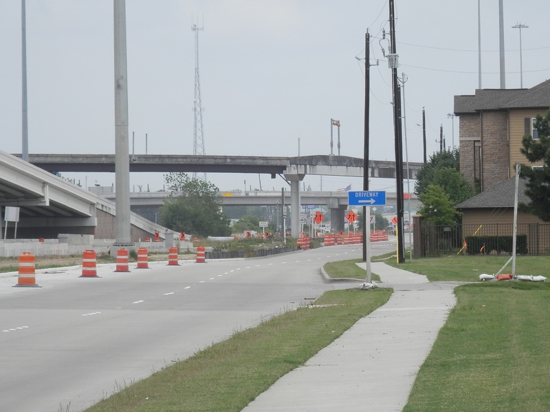 Aug 2012a 109.jpg : Facing south along the 290 frontage road where the new exit ramp to Hempstead Rd. is beginning on the right.