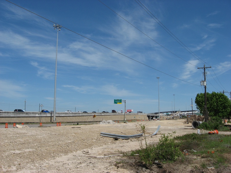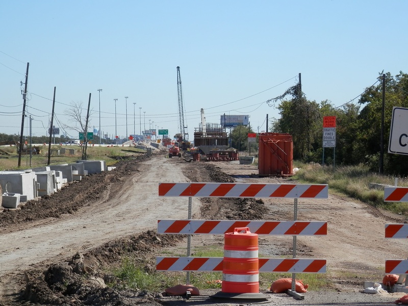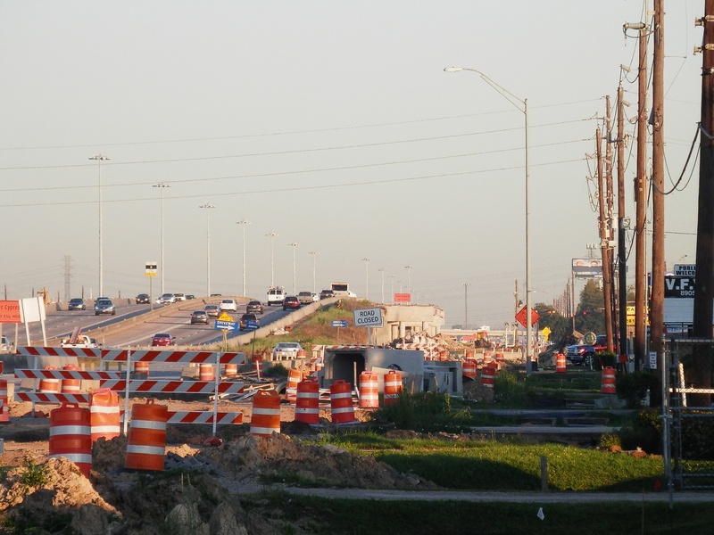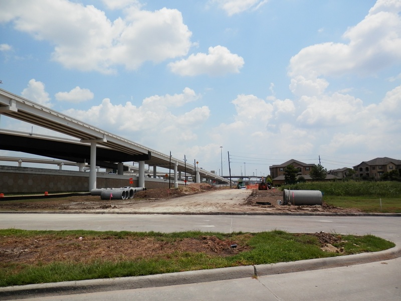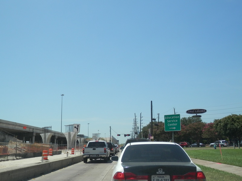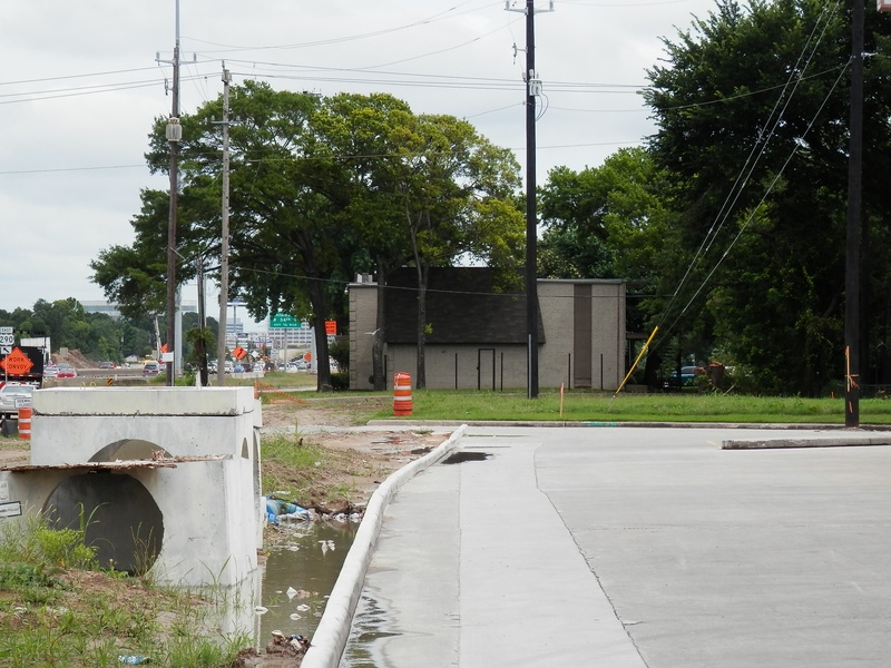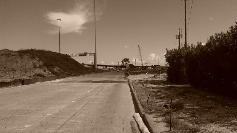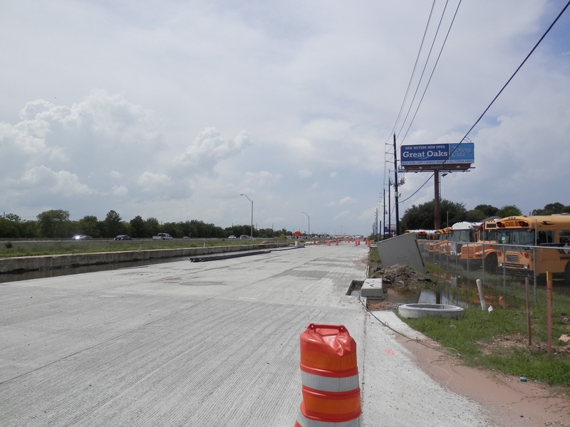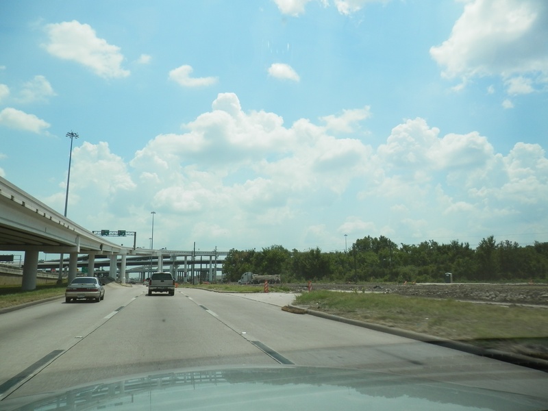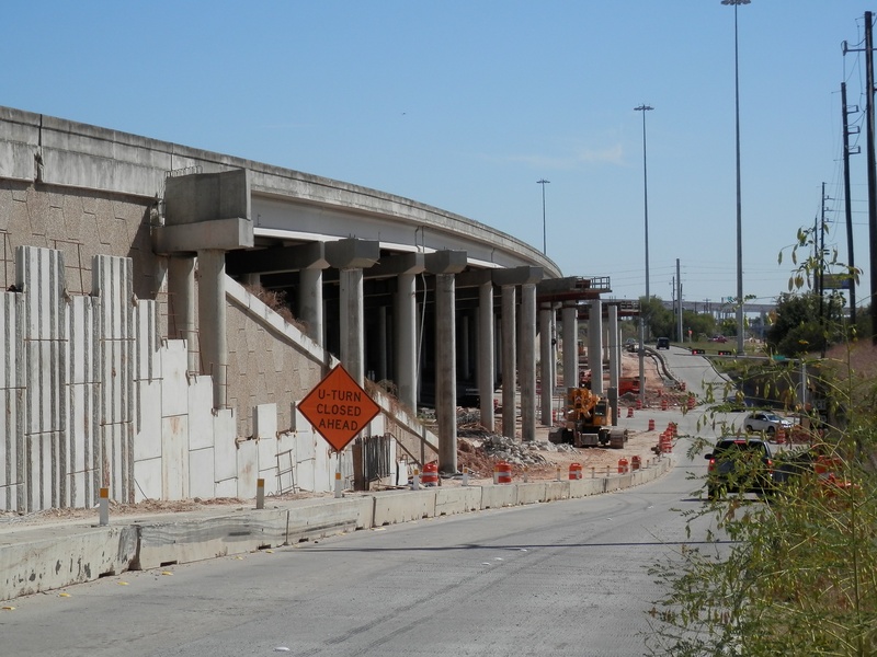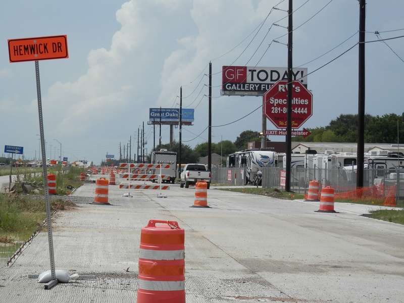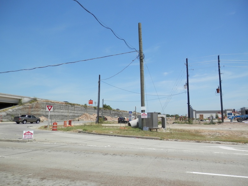 Aug 2012a 109.jpg : Facing south along the 290 frontage road where the new exit ramp to Hempstead Rd. is beginning on the right.