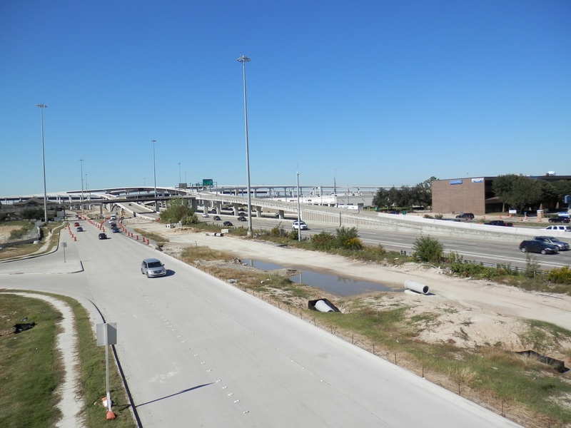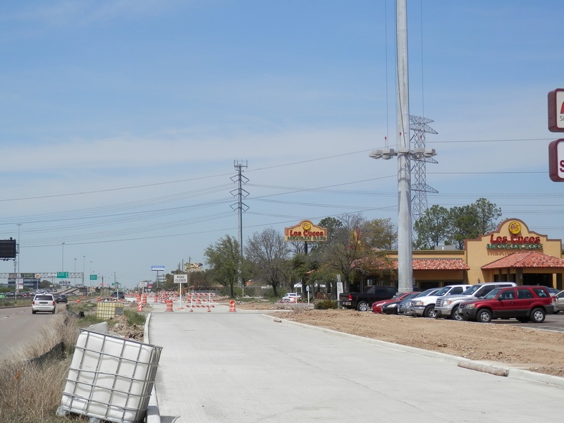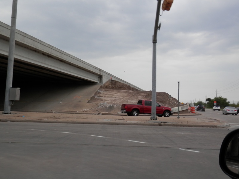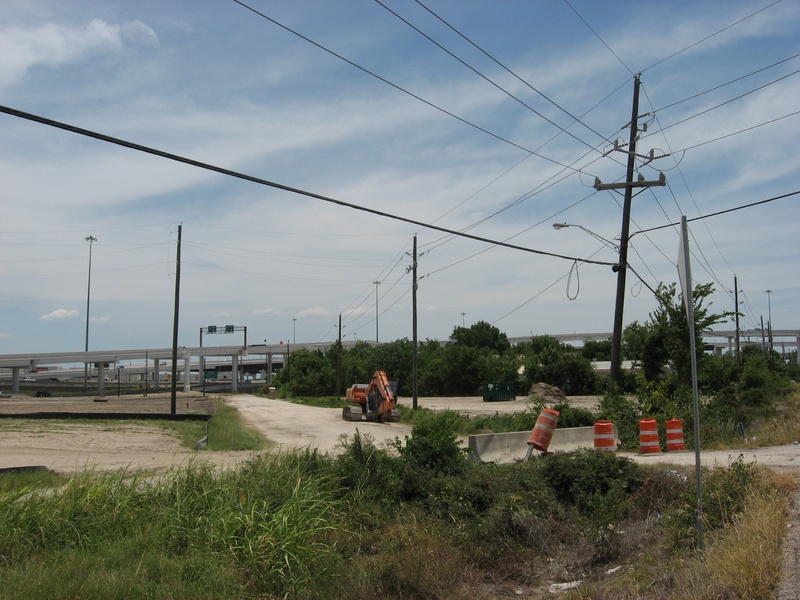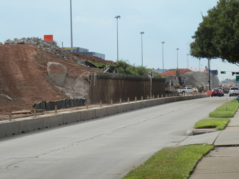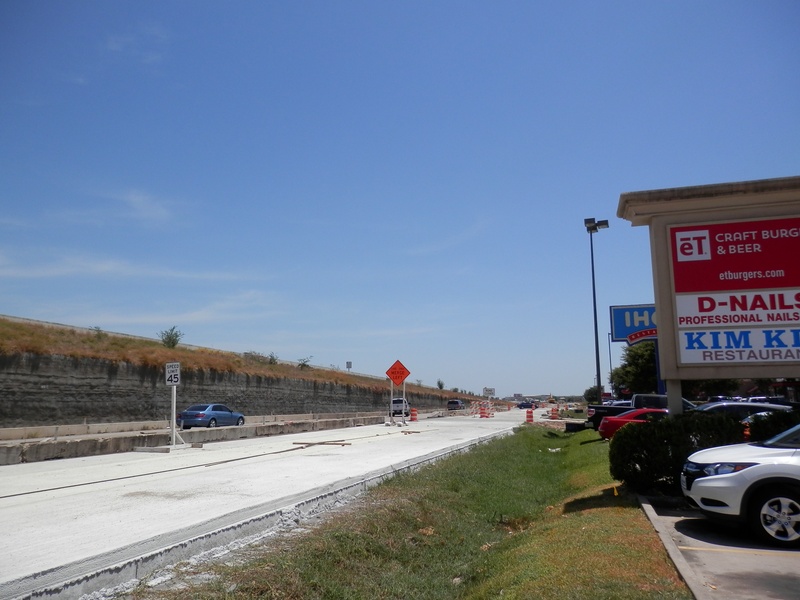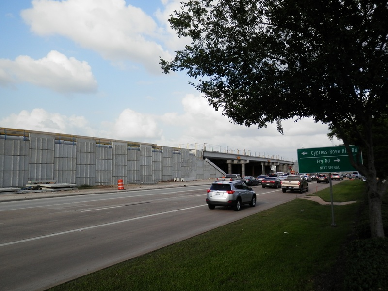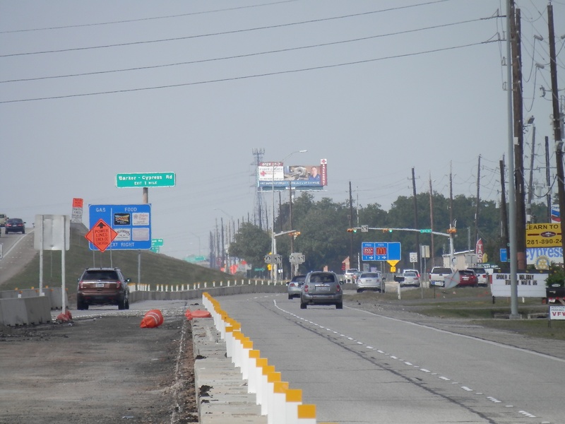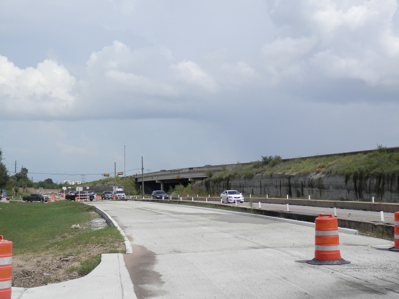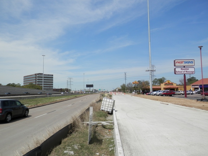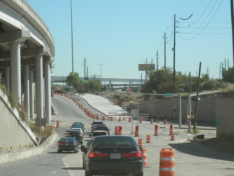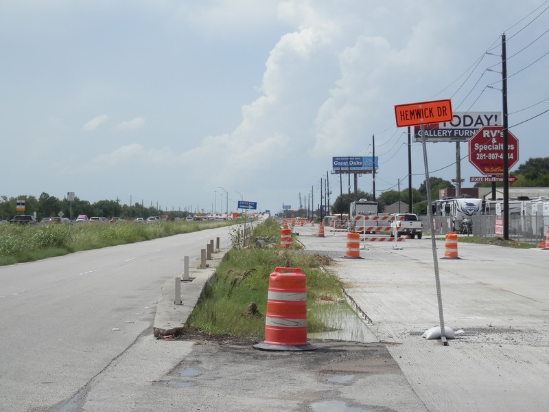Aug 2012a 109.jpg : Facing south along the 290 frontage road where the new exit ramp to Hempstead Rd. is beginning on the right.