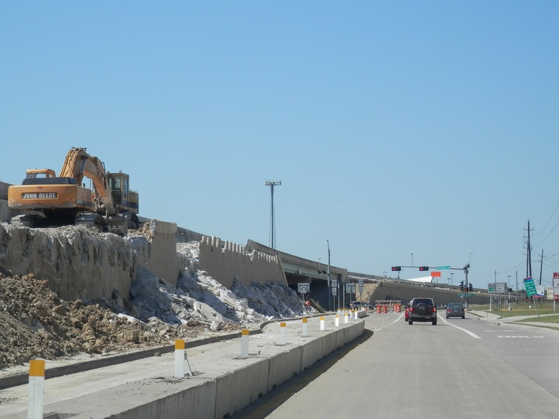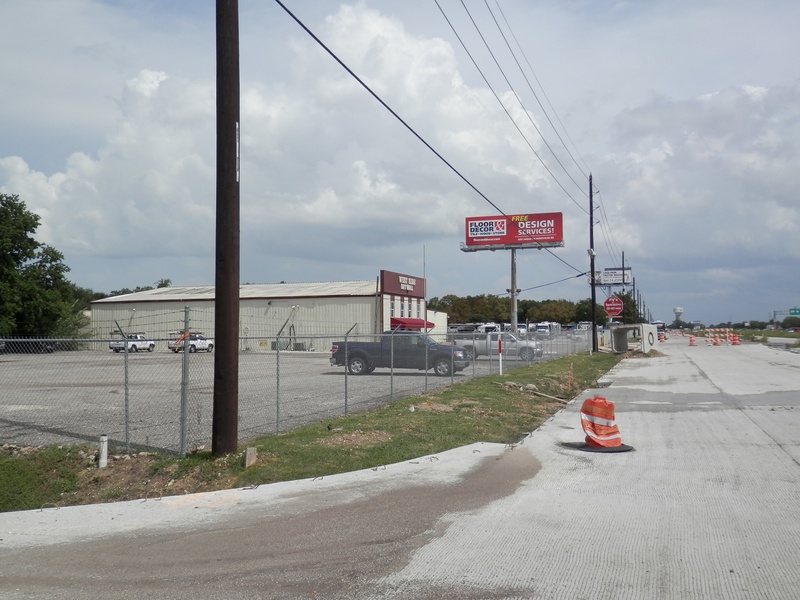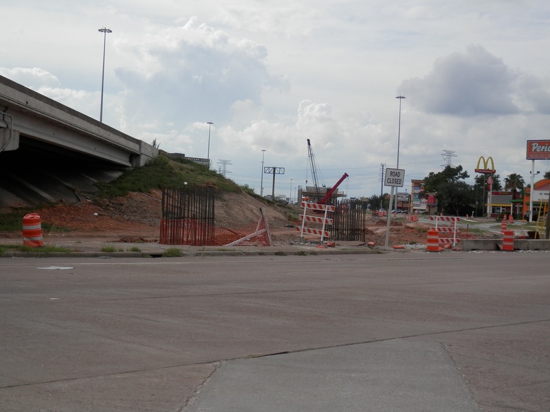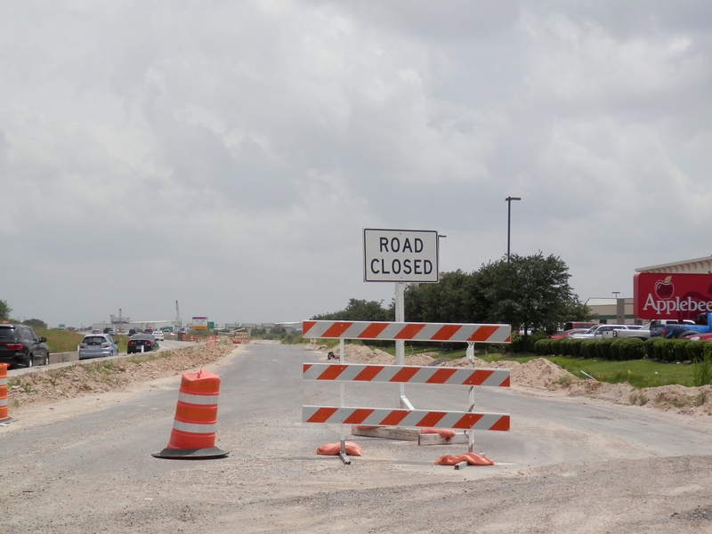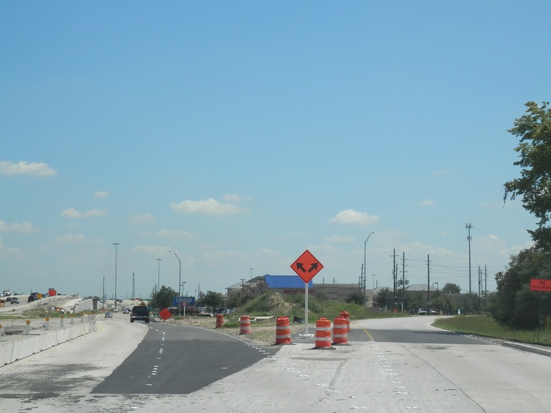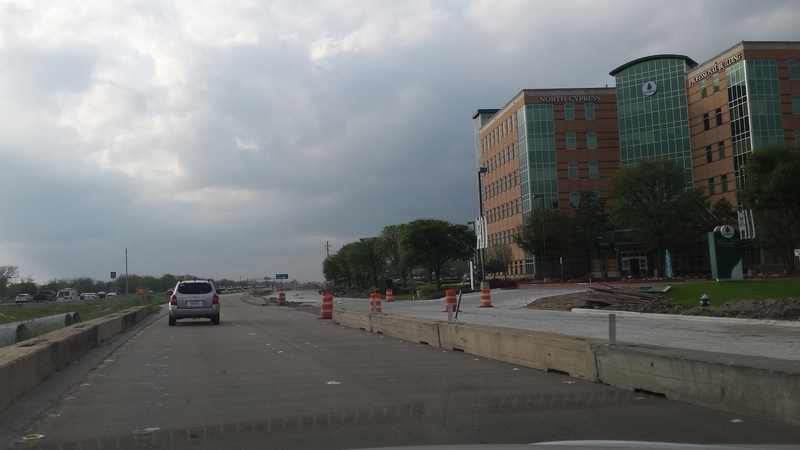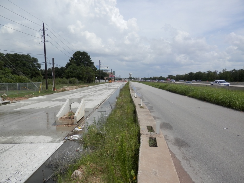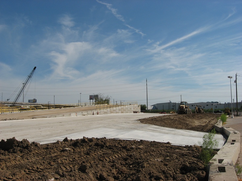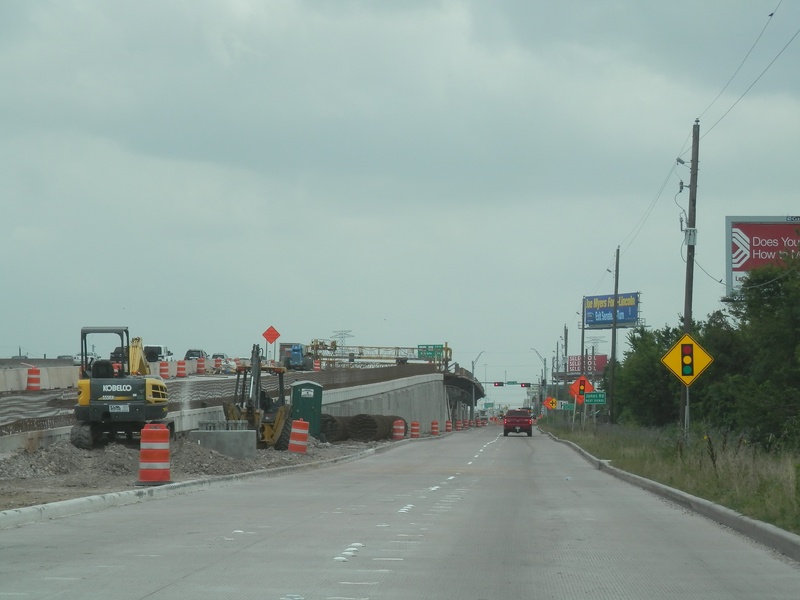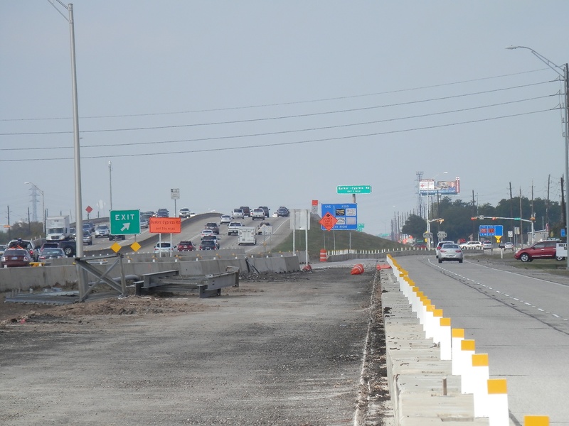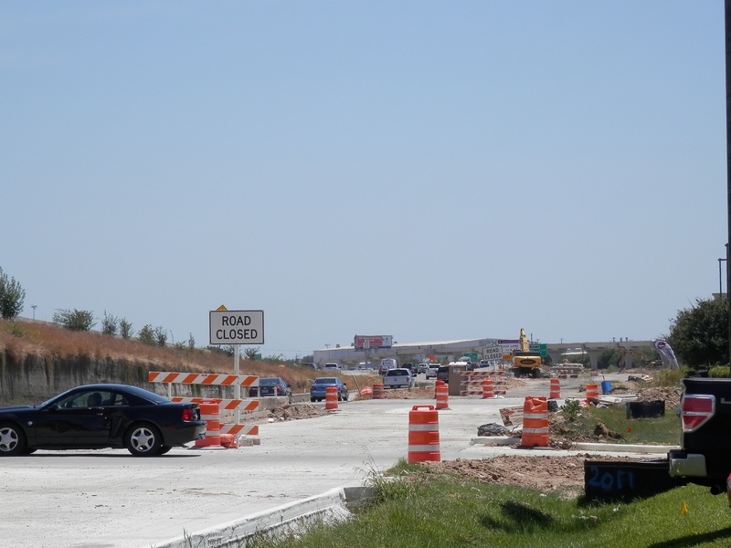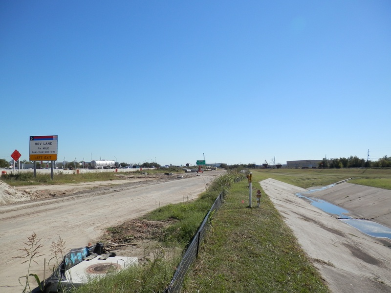 Aug 2012a 109.jpg : Facing south along the 290 frontage road where the new exit ramp to Hempstead Rd. is beginning on the right.