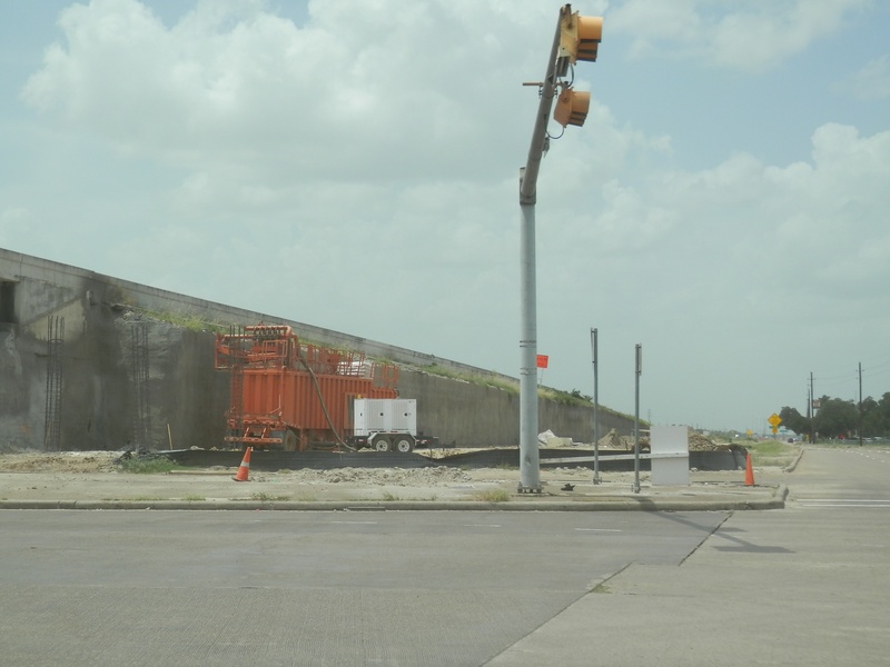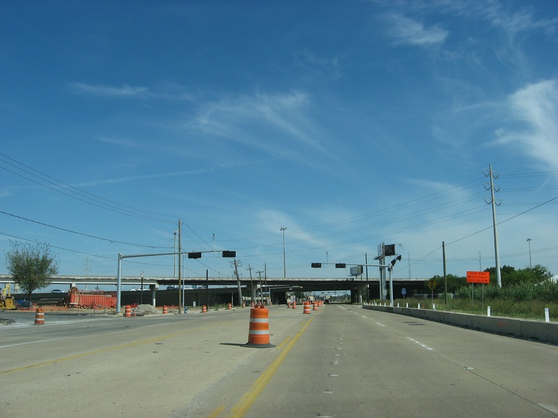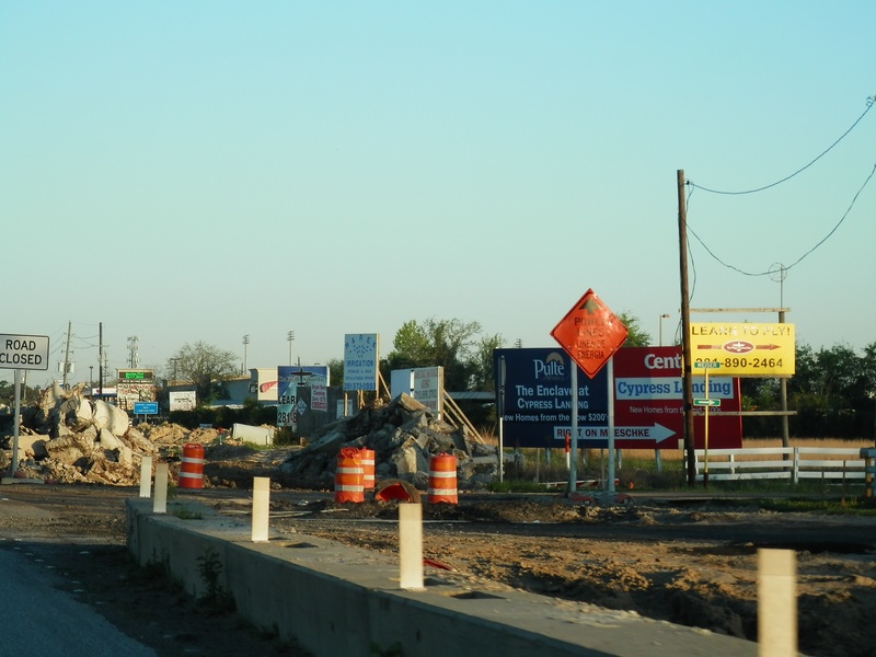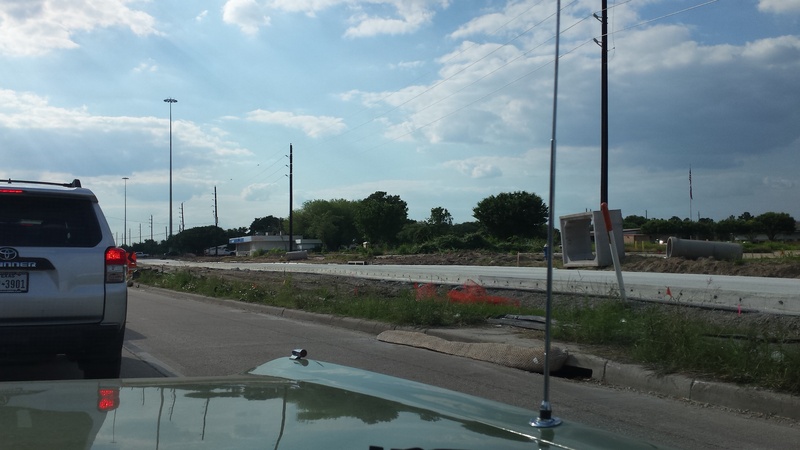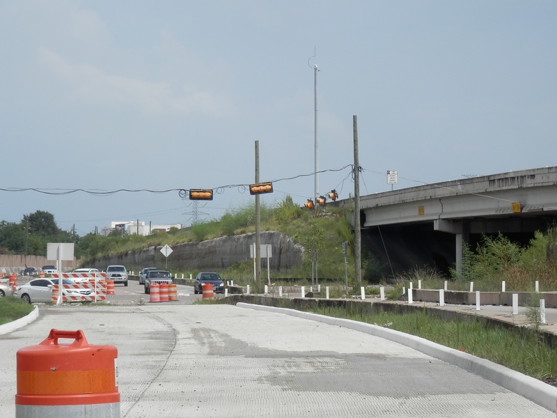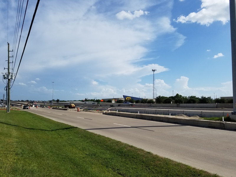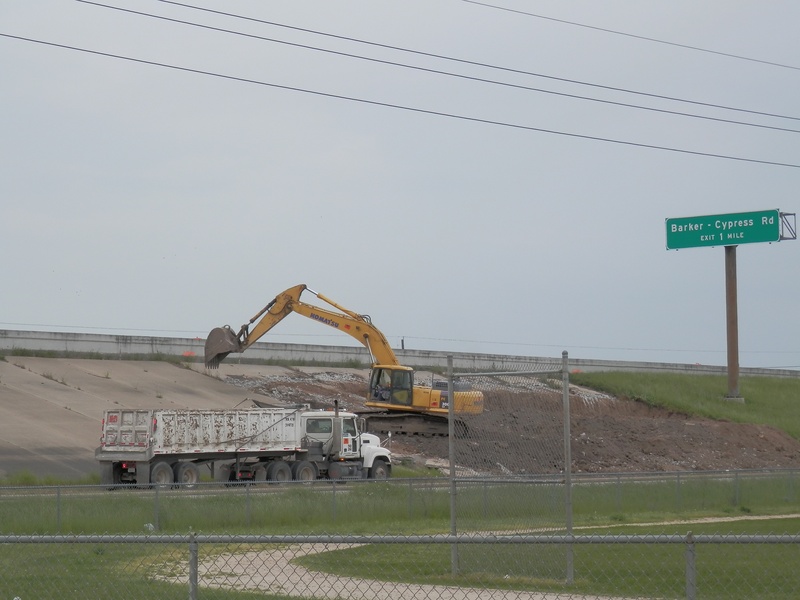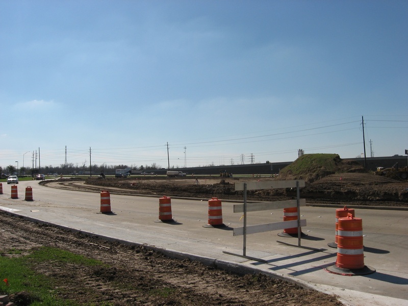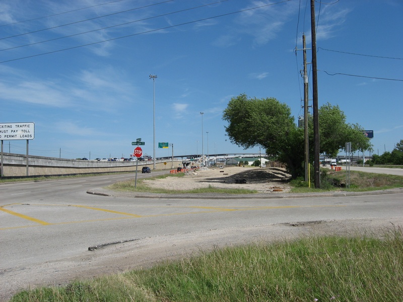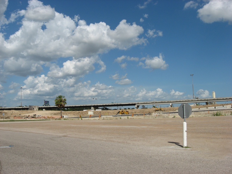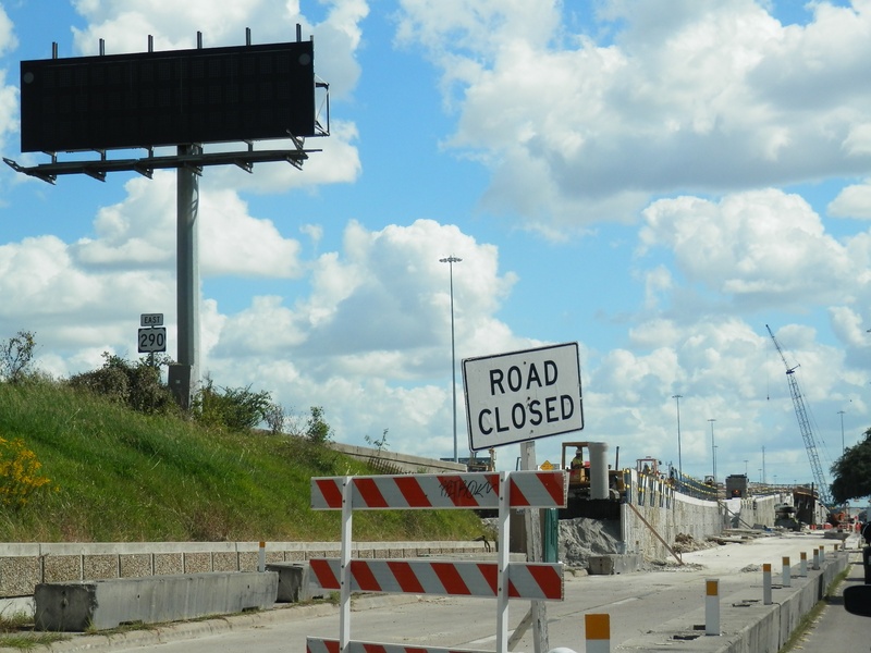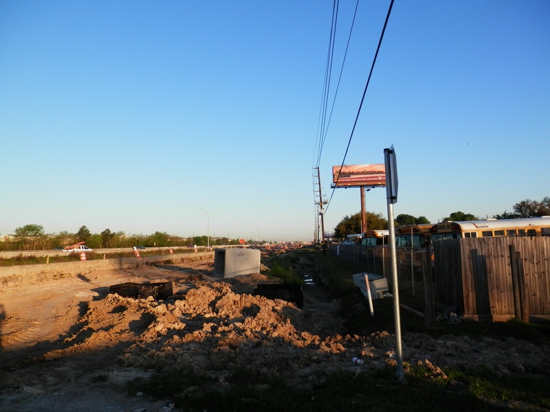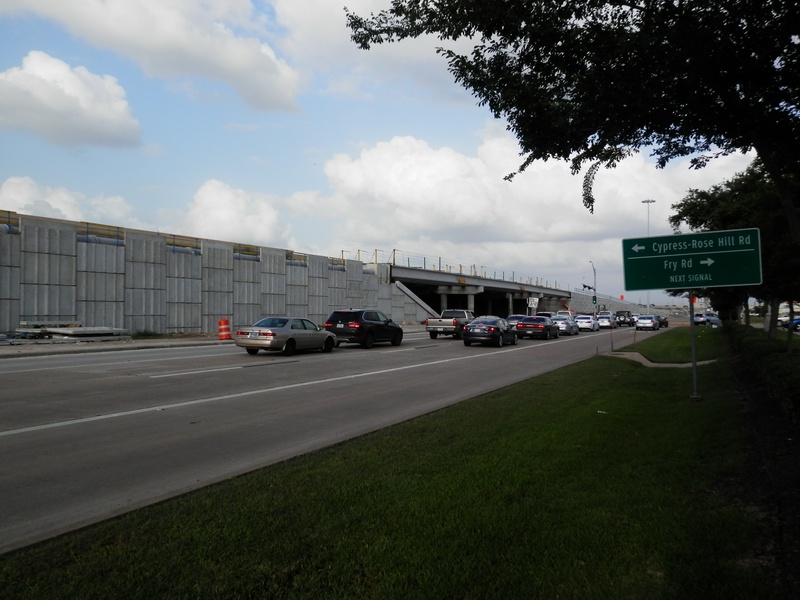 Aug 2012a 109.jpg : Facing south along the 290 frontage road where the new exit ramp to Hempstead Rd. is beginning on the right.
