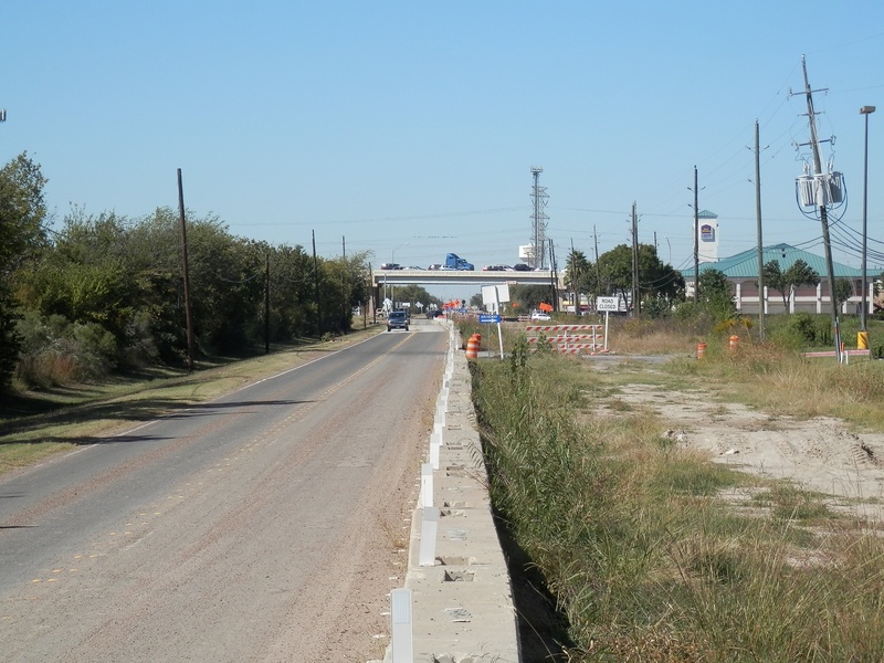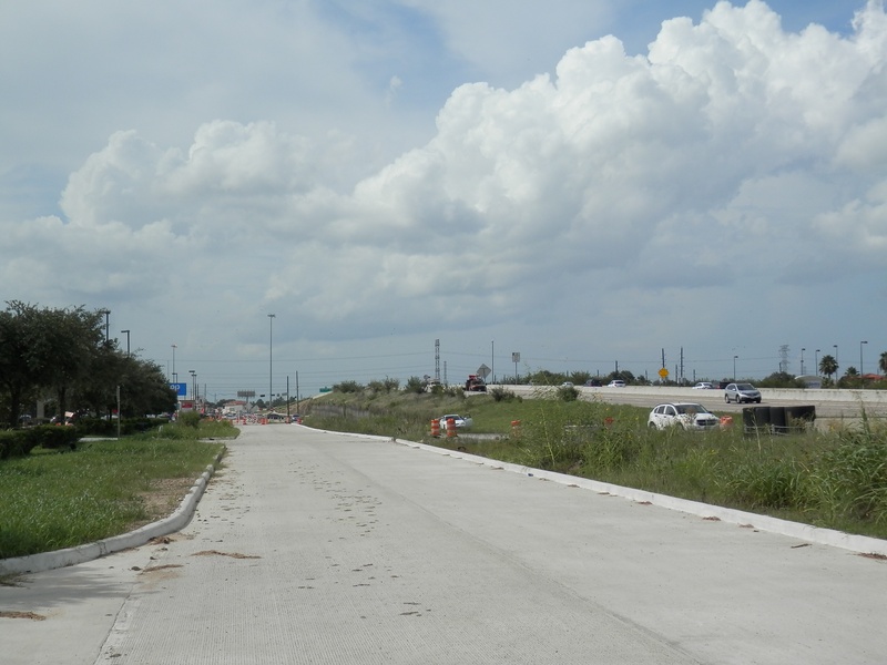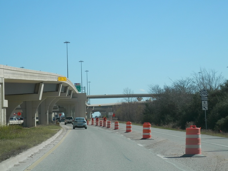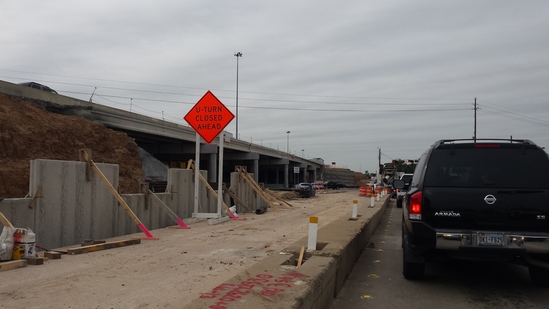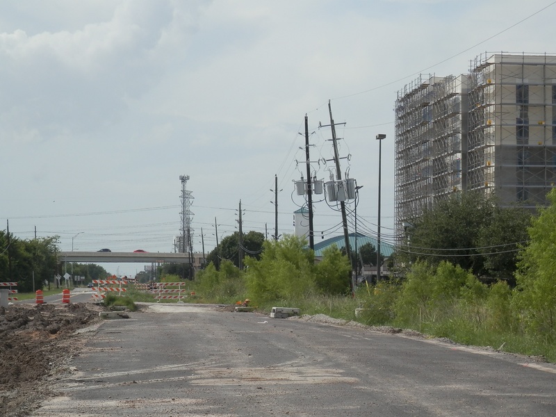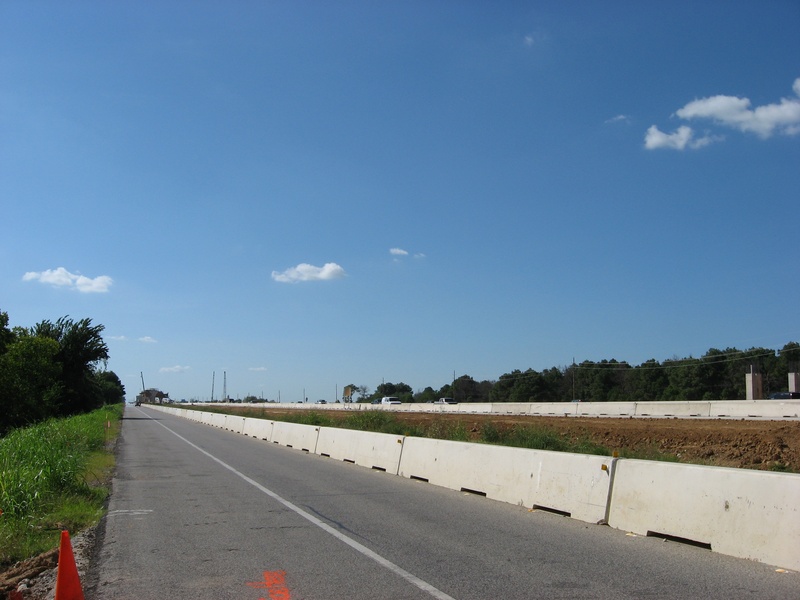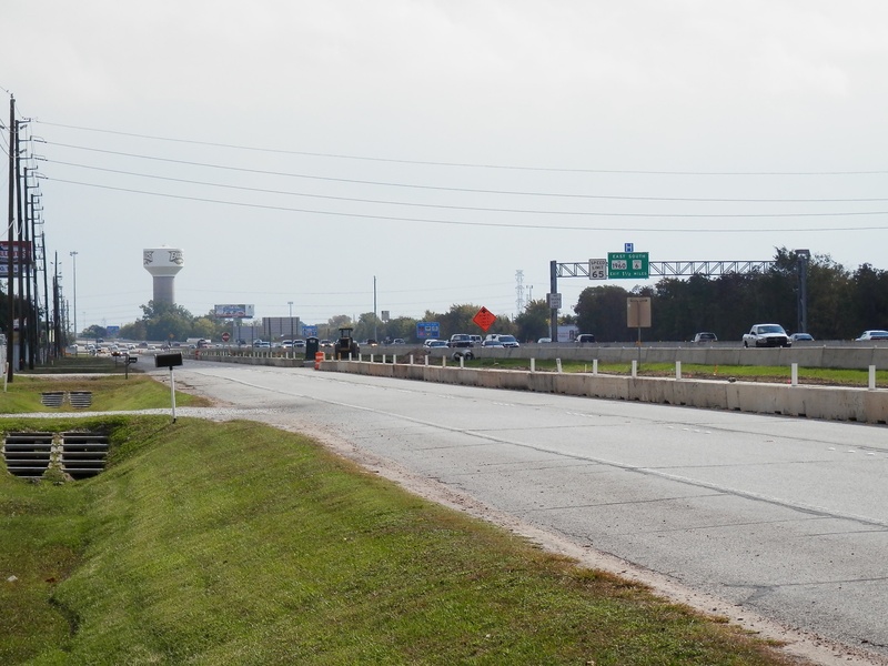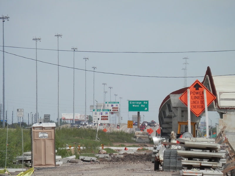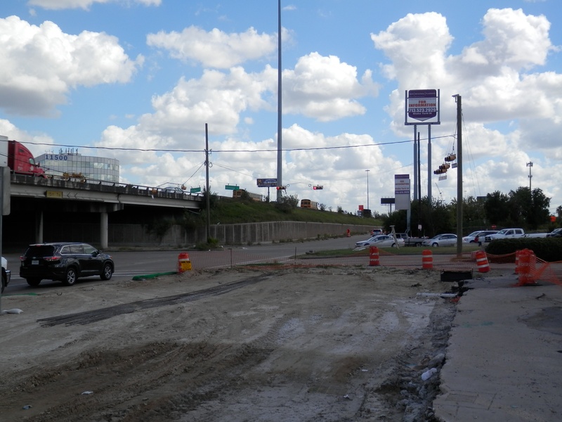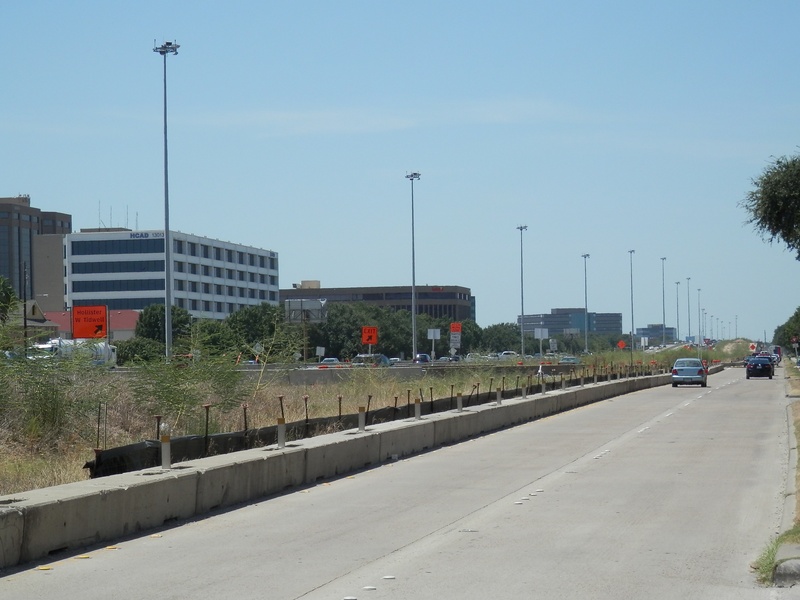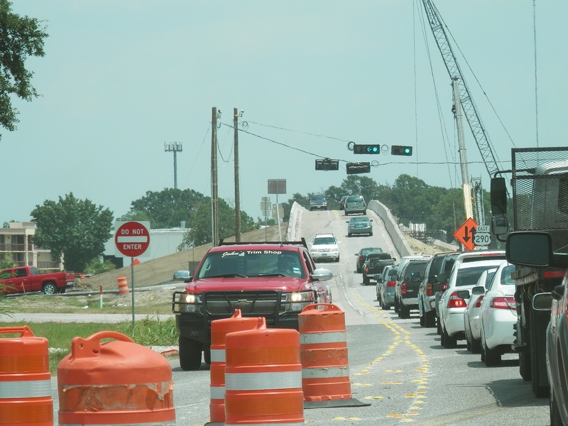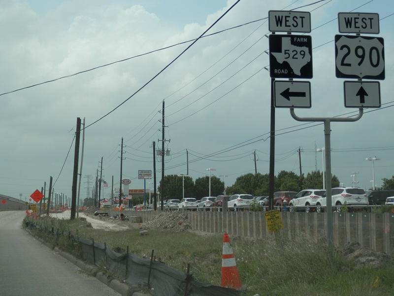 Aug 2012a 109.jpg : Facing south along the 290 frontage road where the new exit ramp to Hempstead Rd. is beginning on the right.