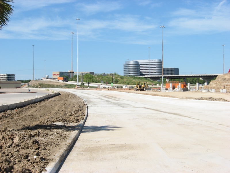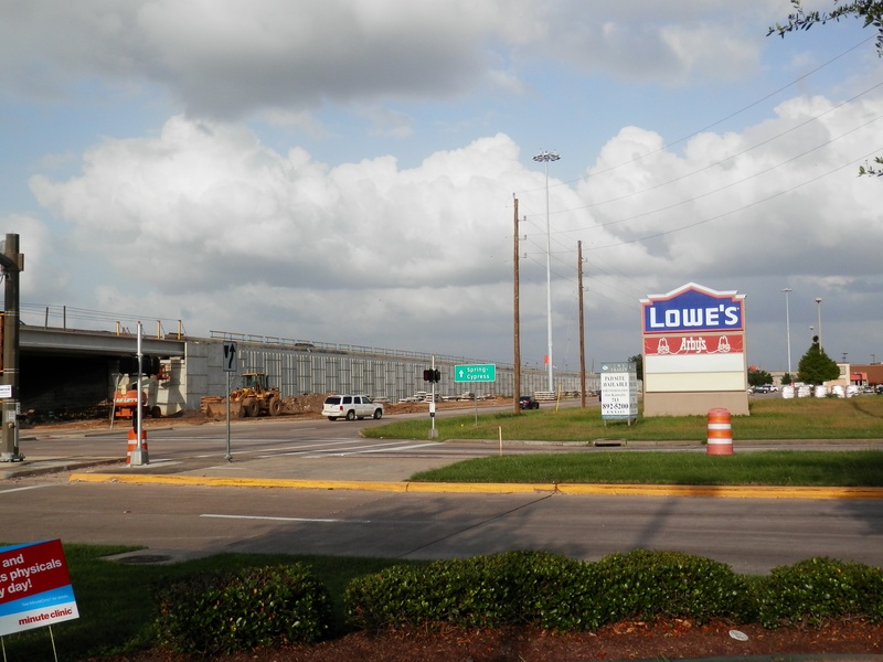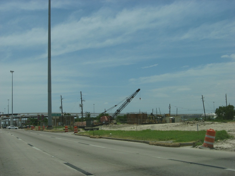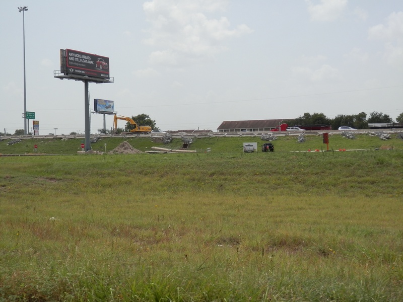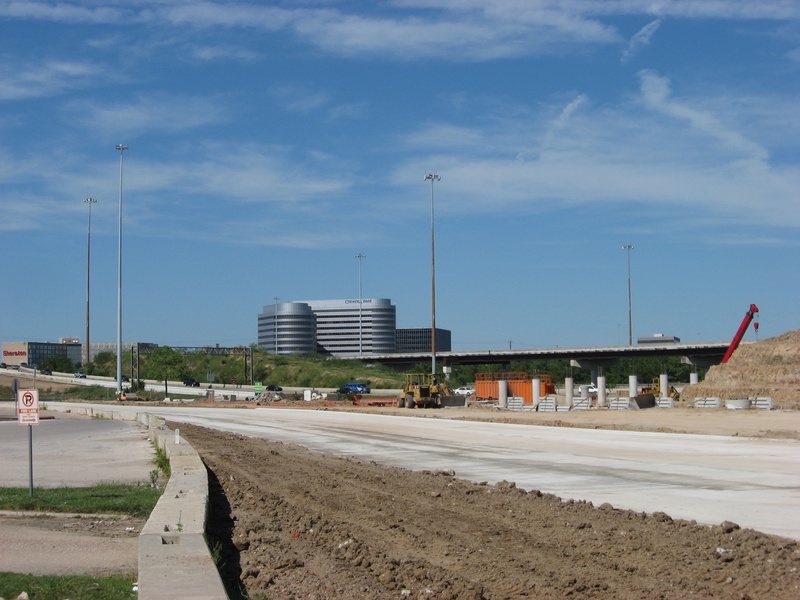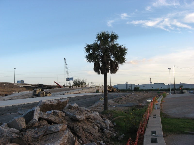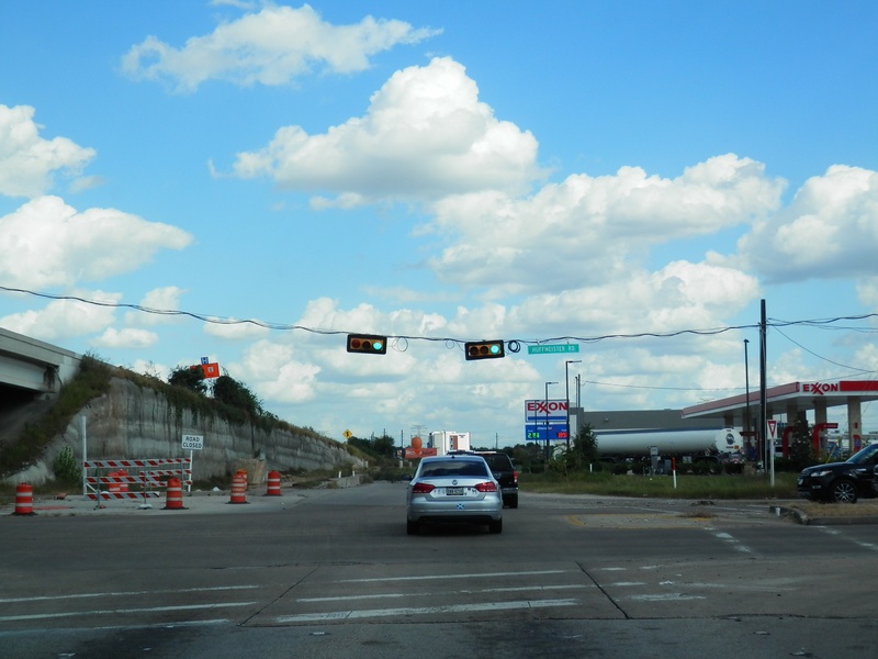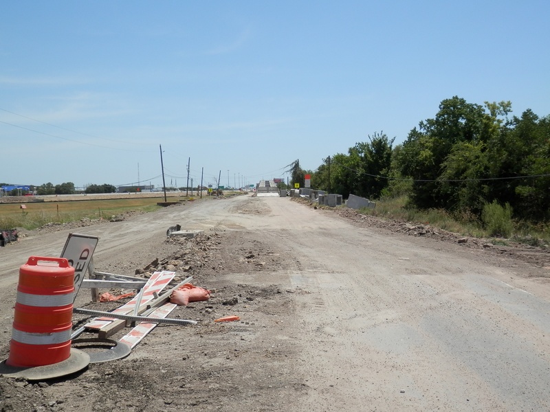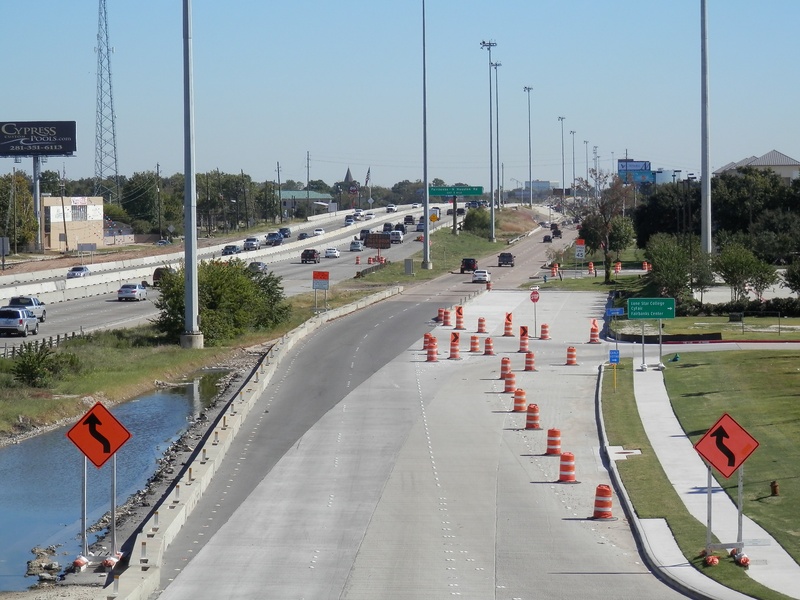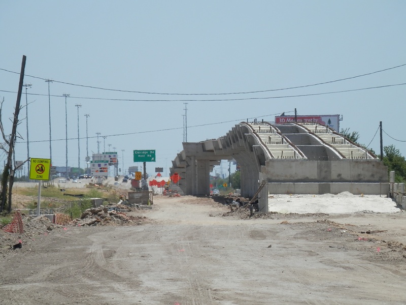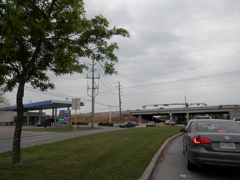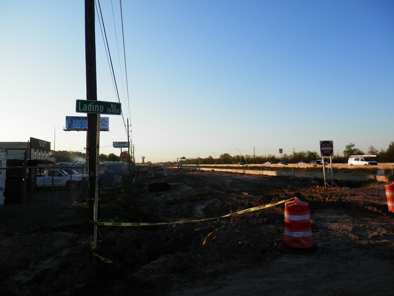 Aug 2012a 109.jpg : Facing south along the 290 frontage road where the new exit ramp to Hempstead Rd. is beginning on the right.