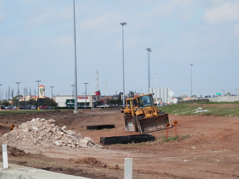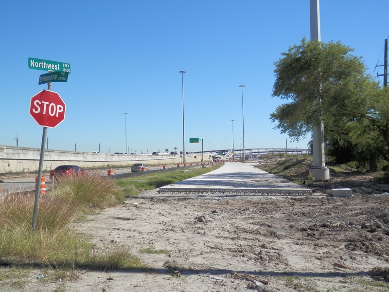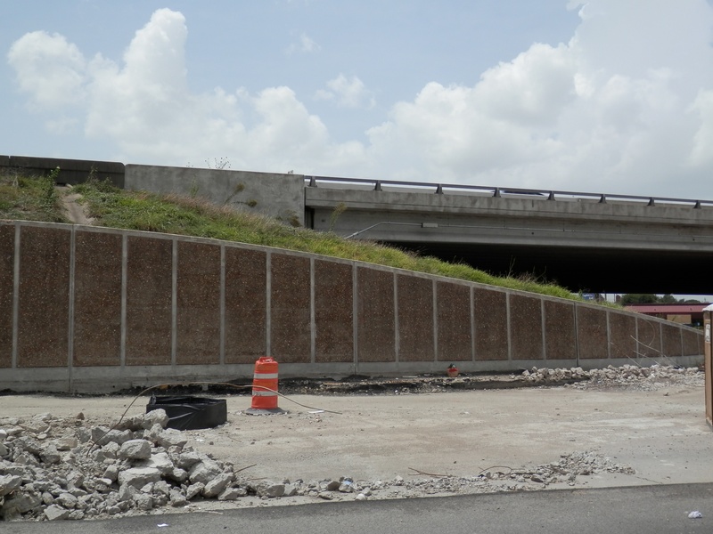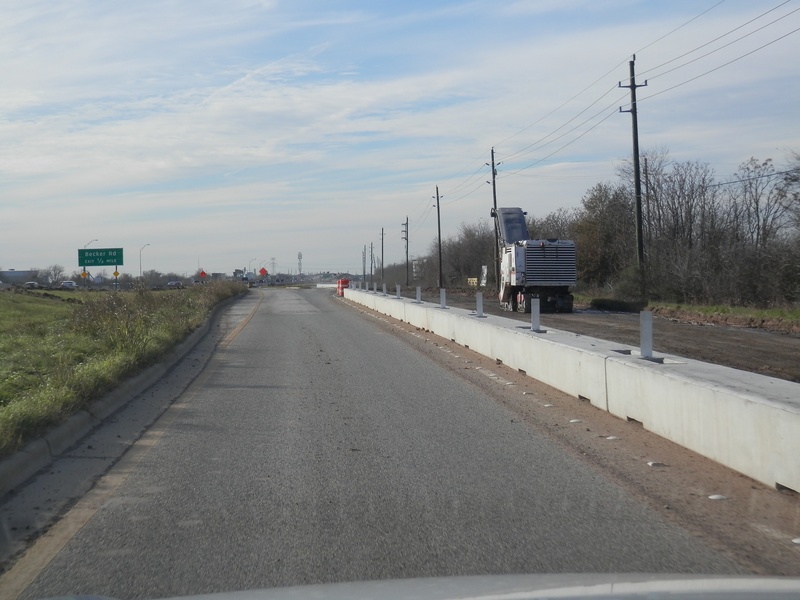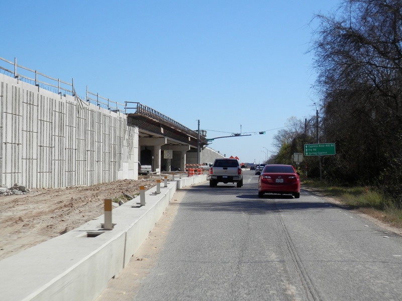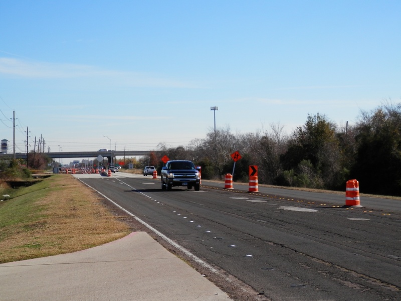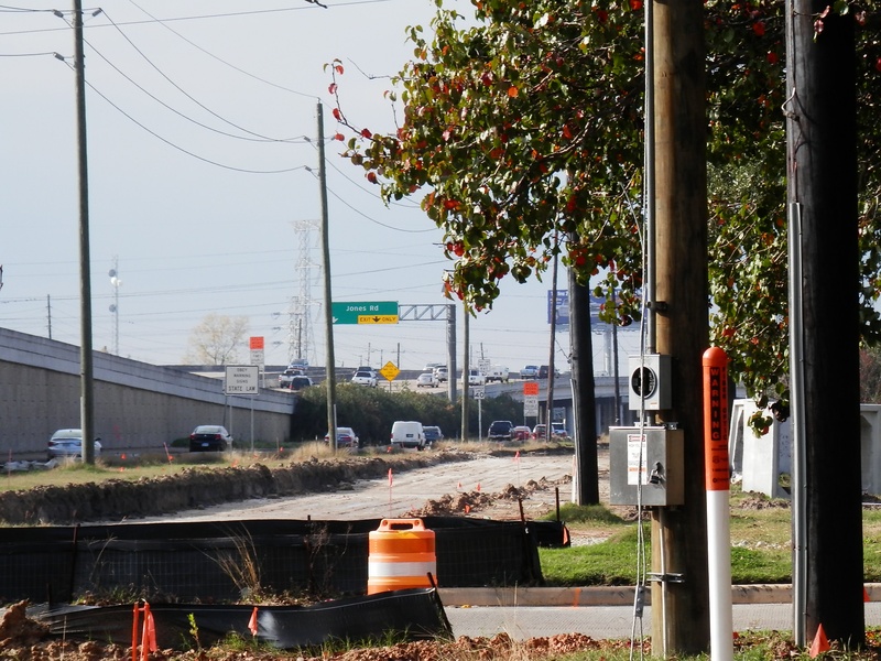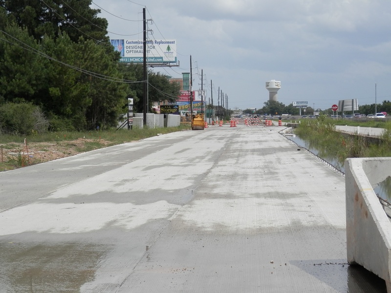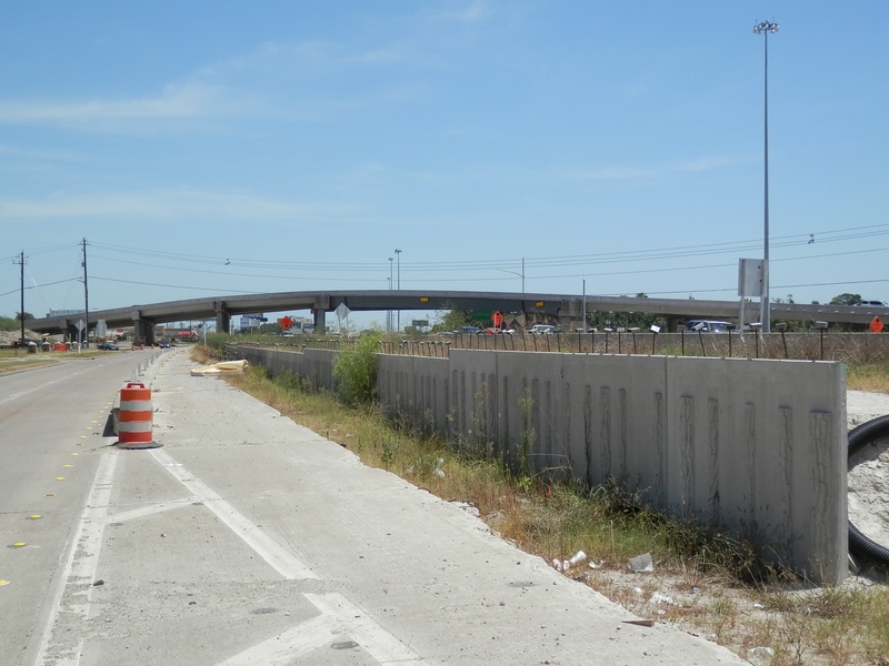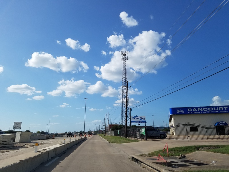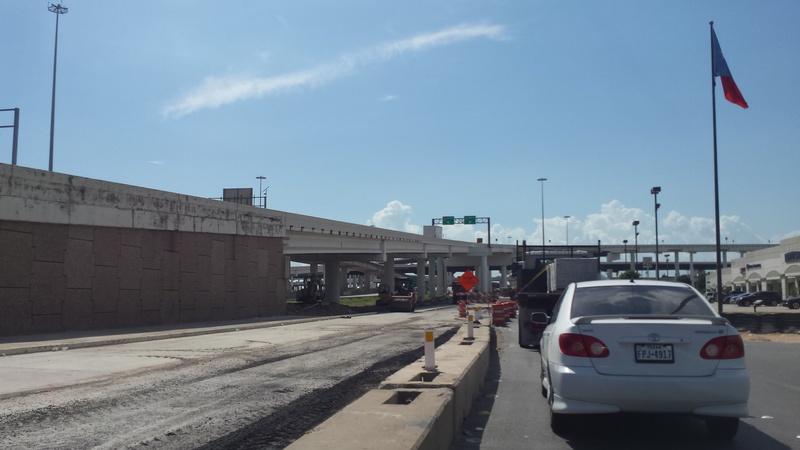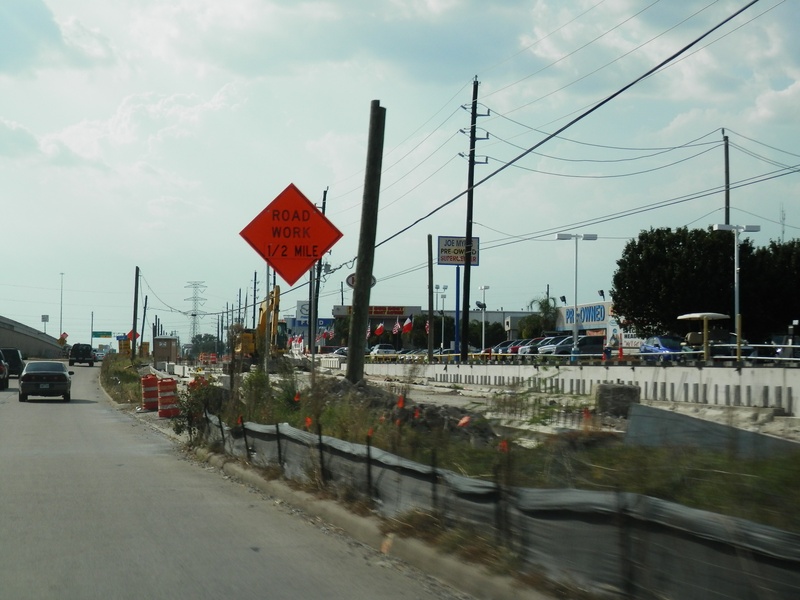 Aug 2012a 109.jpg : Facing south along the 290 frontage road where the new exit ramp to Hempstead Rd. is beginning on the right.