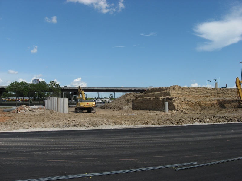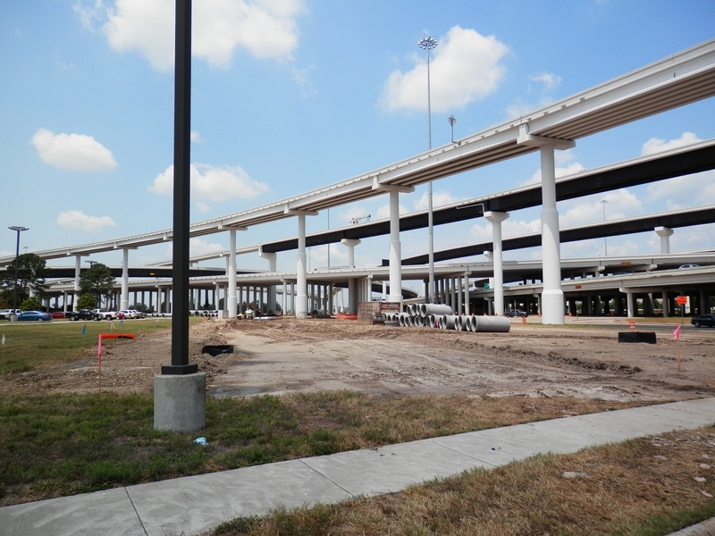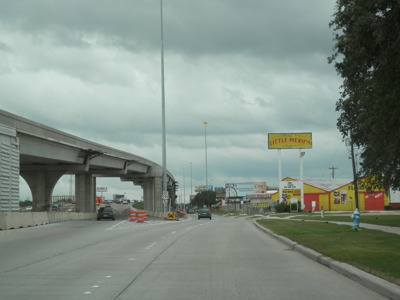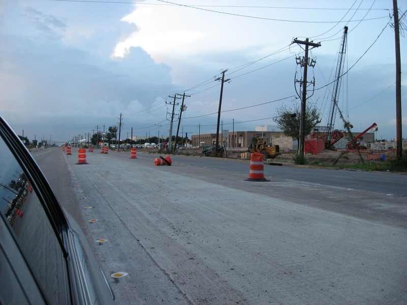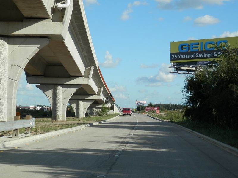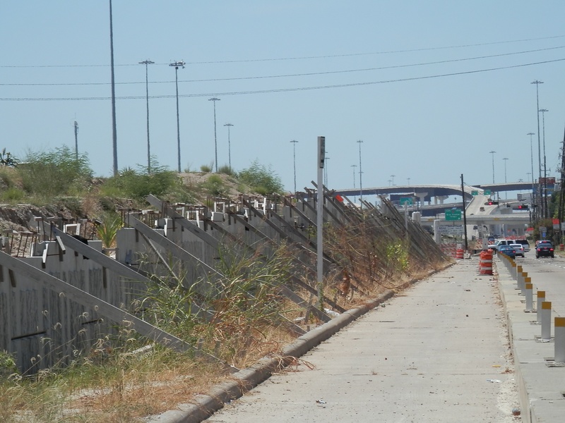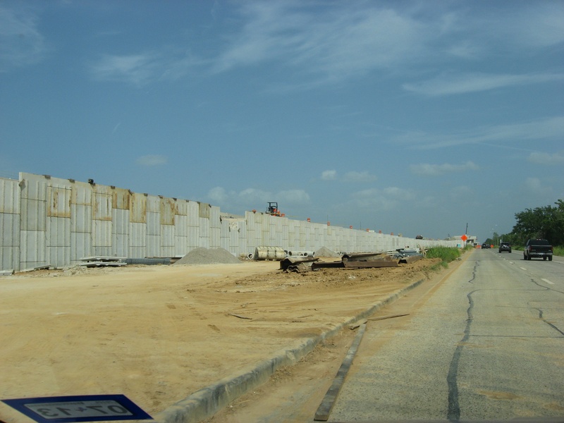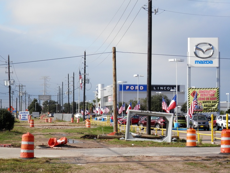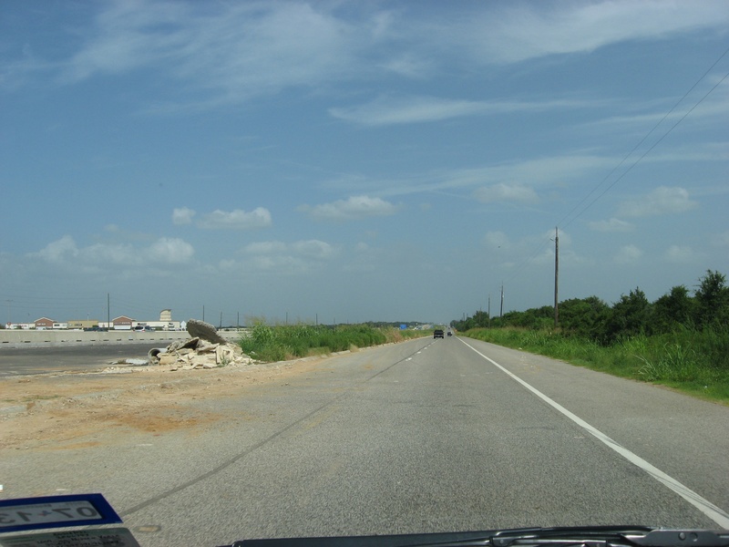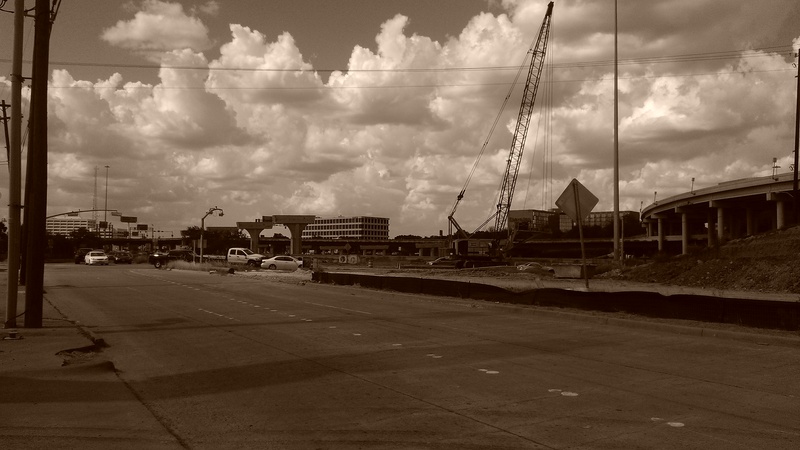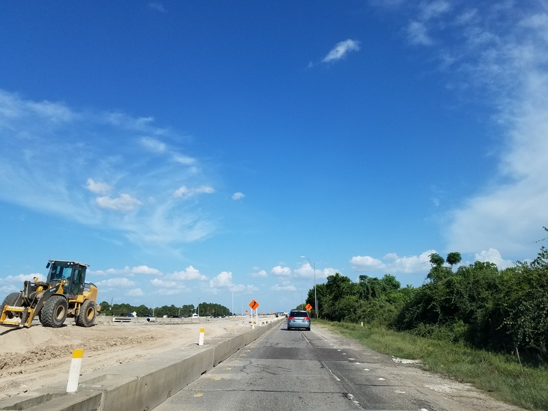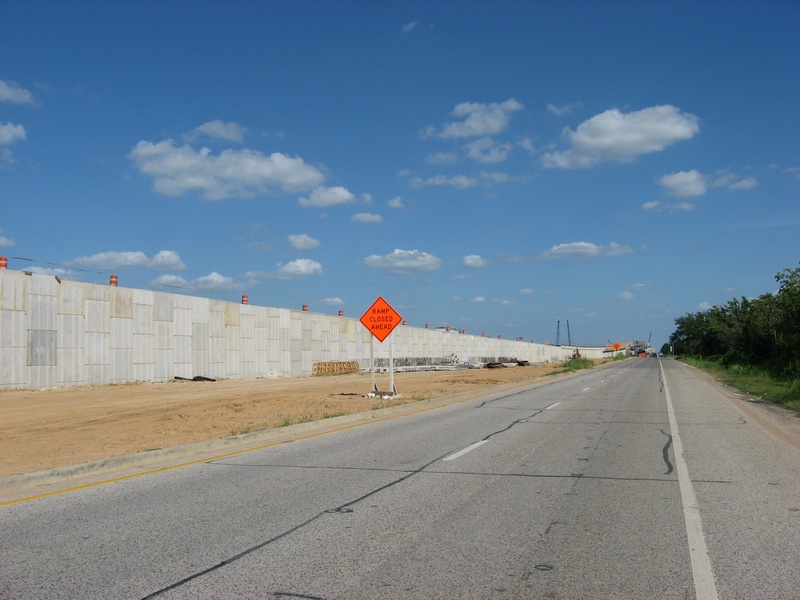 Aug 2012a 109.jpg : Facing south along the 290 frontage road where the new exit ramp to Hempstead Rd. is beginning on the right.