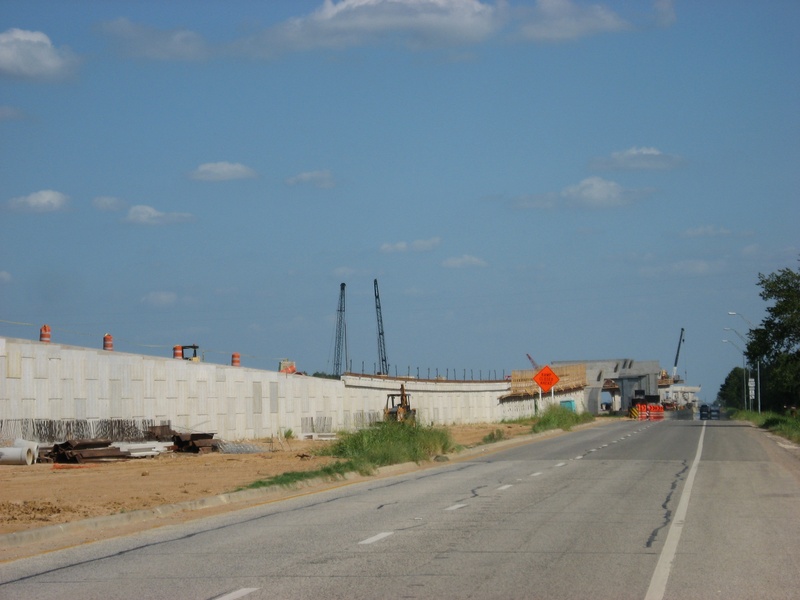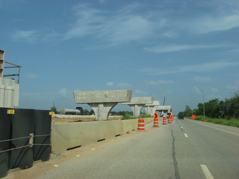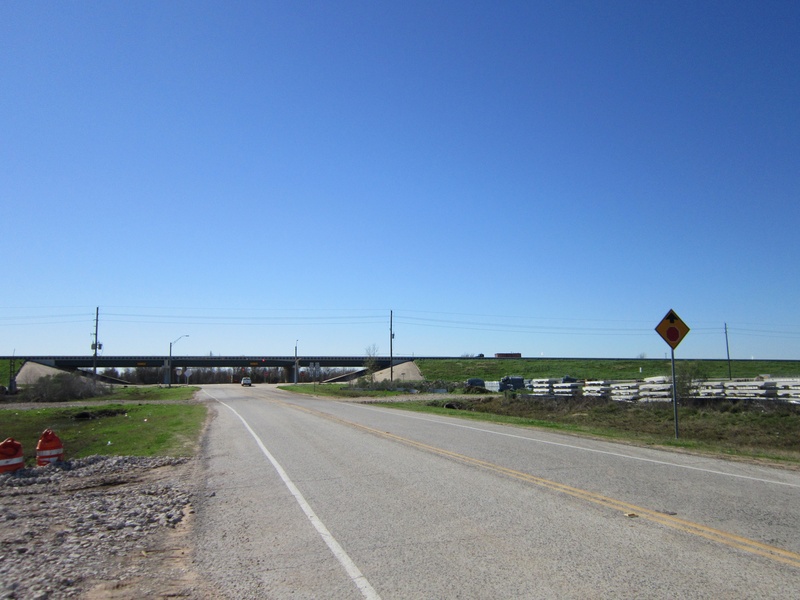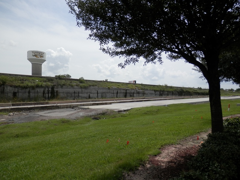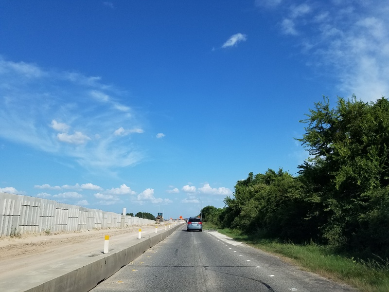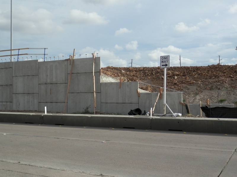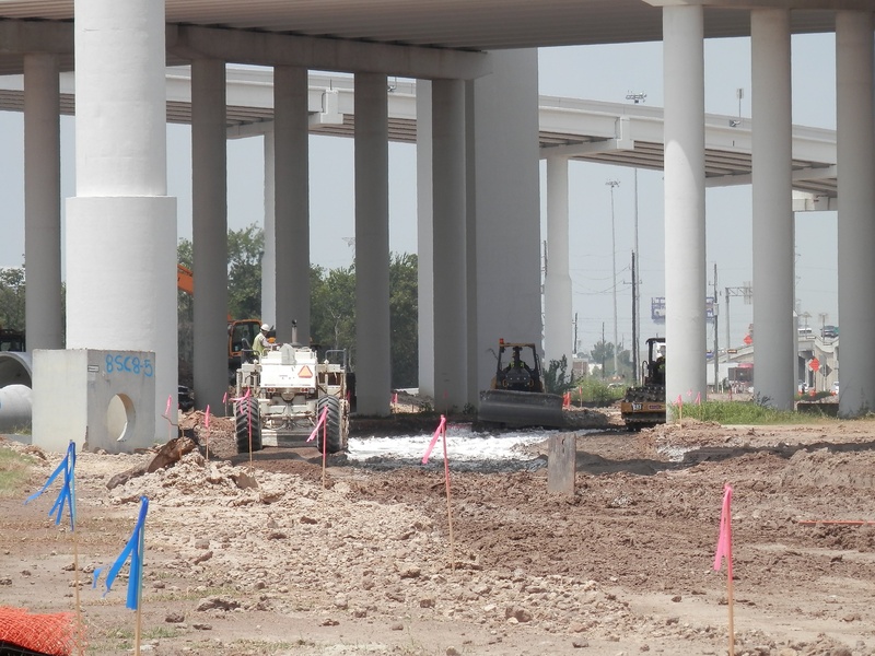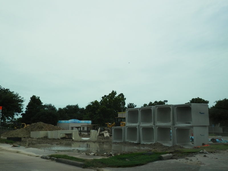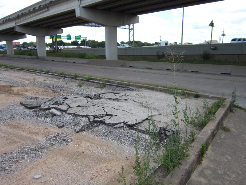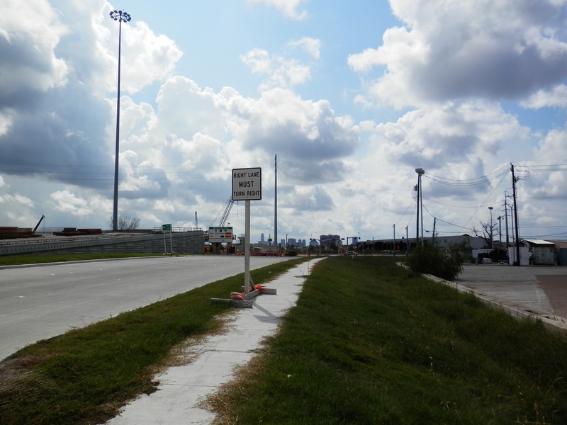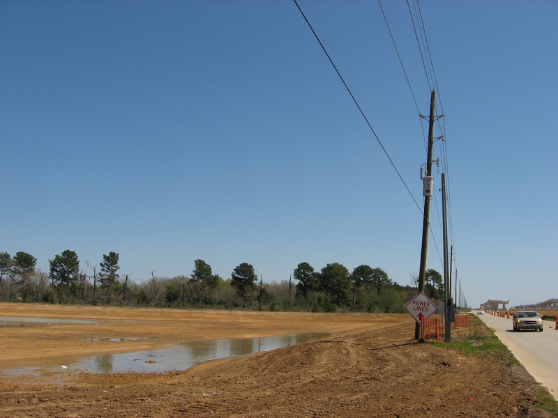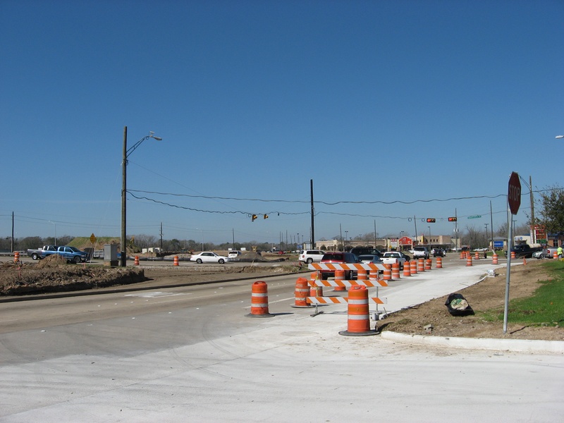 Aug 2012a 109.jpg : Facing south along the 290 frontage road where the new exit ramp to Hempstead Rd. is beginning on the right.