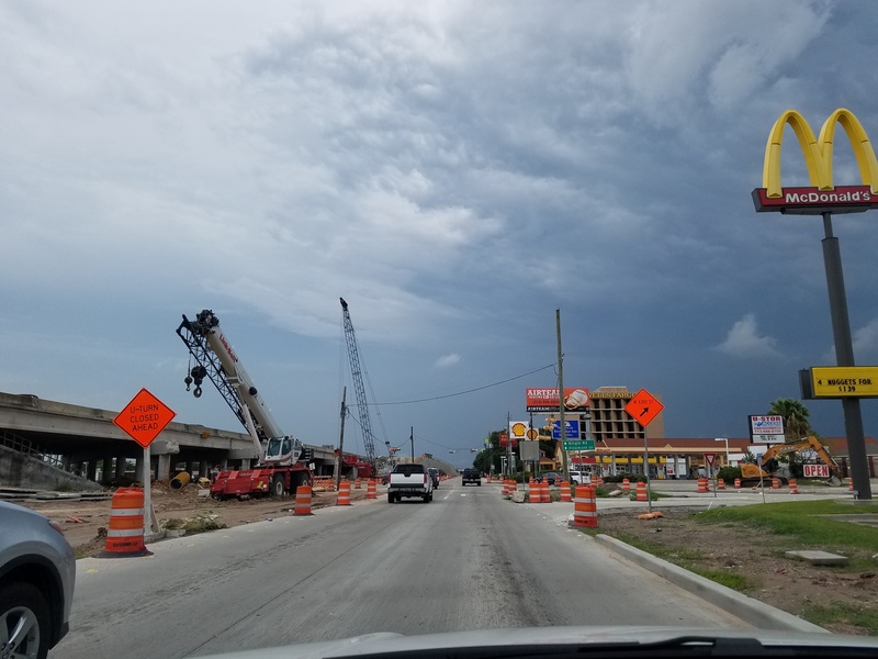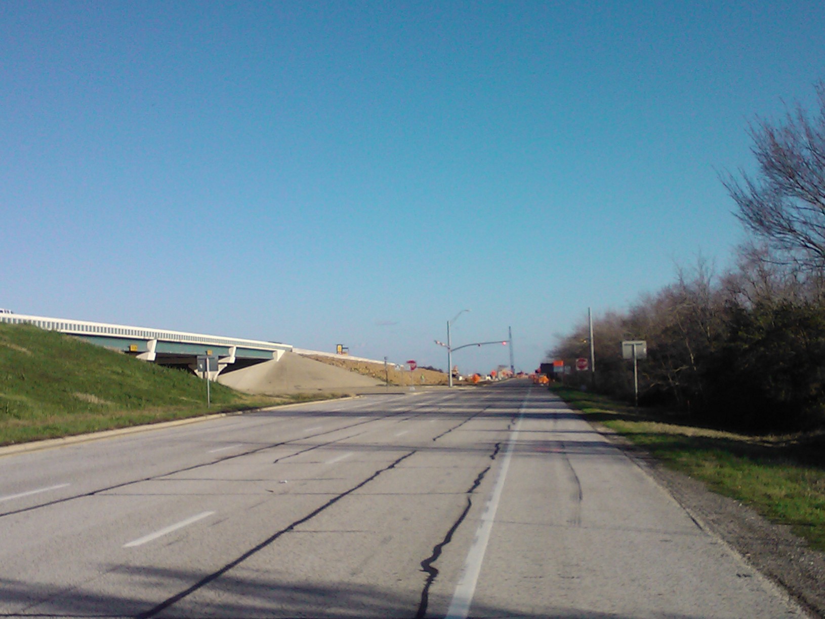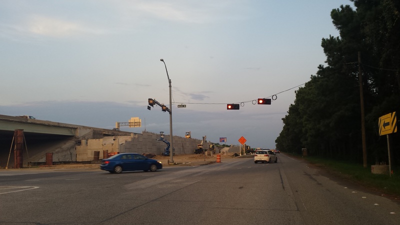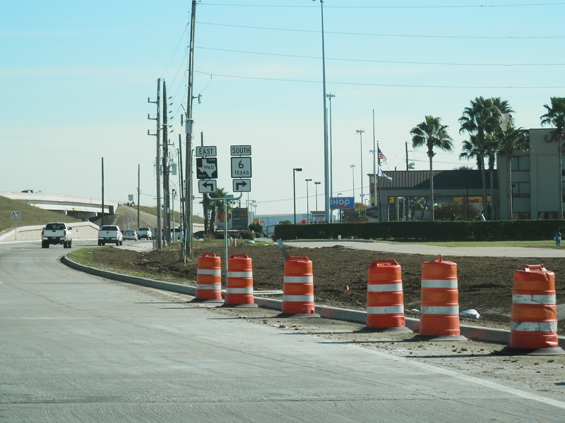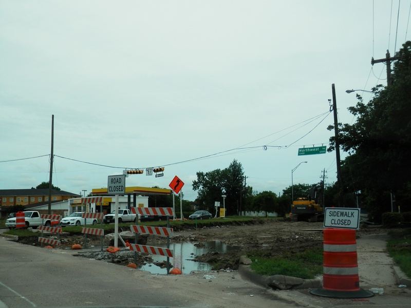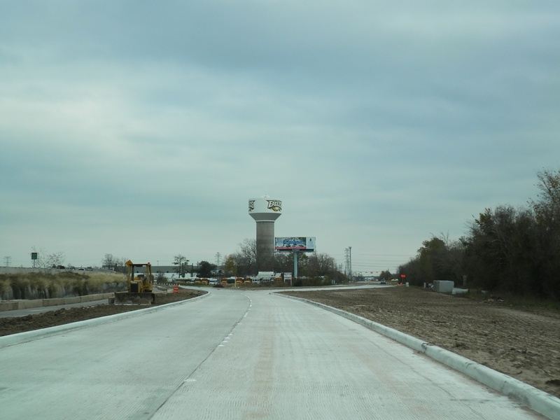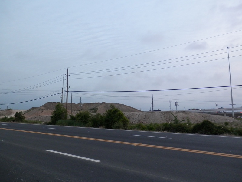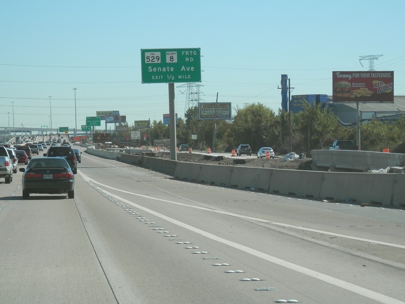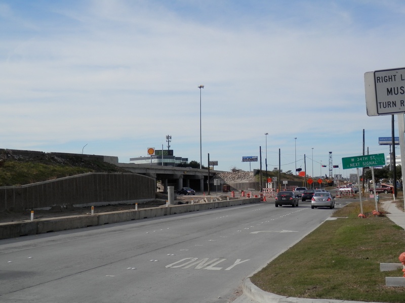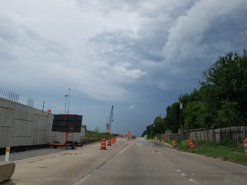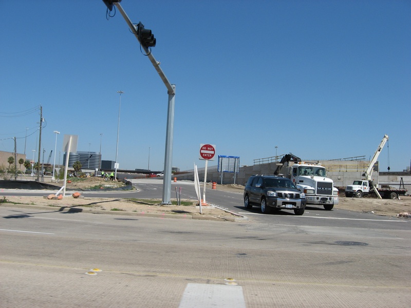 Aug 2012a 109.jpg : Facing south along the 290 frontage road where the new exit ramp to Hempstead Rd. is beginning on the right.