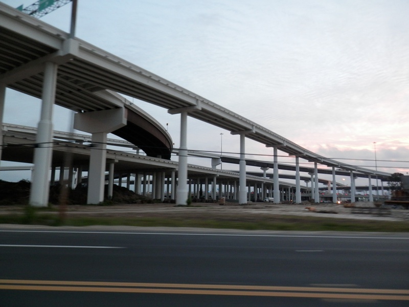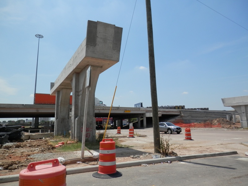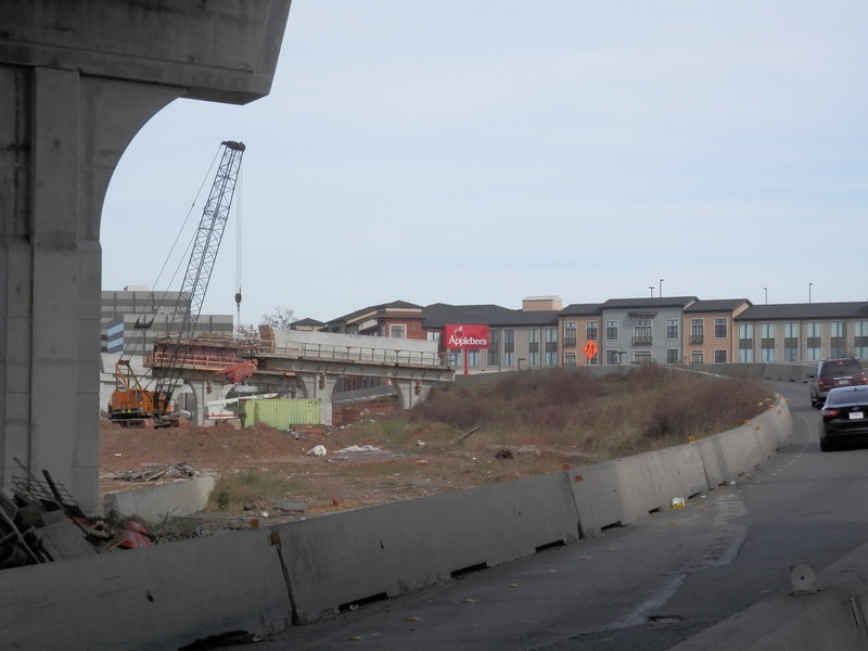 Aug 2014a 062.JPG : Facing north from the east exit ramp, zoomed in across the parking lot towards the freeway alignments.
