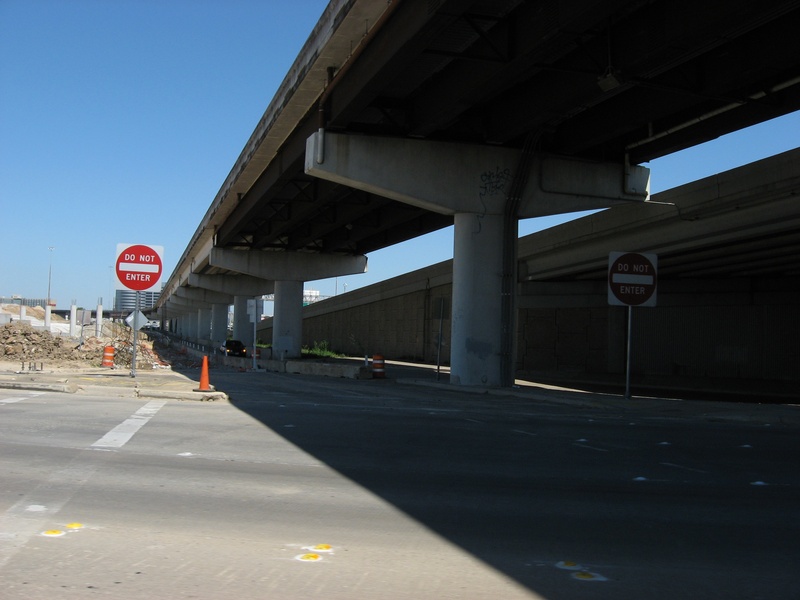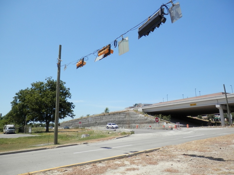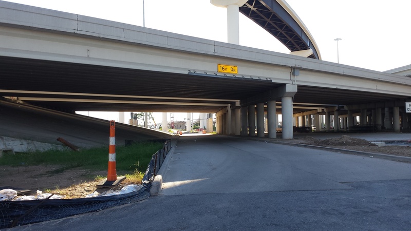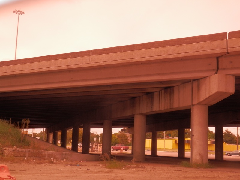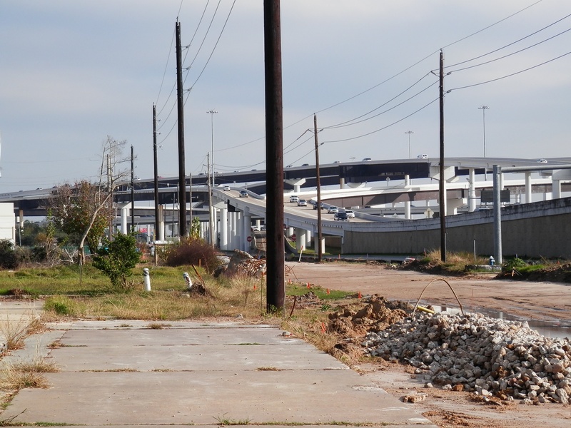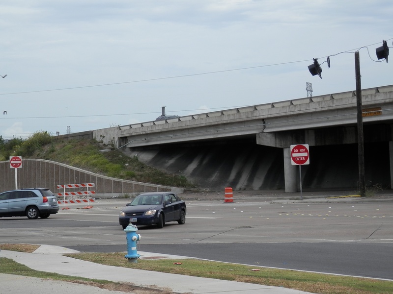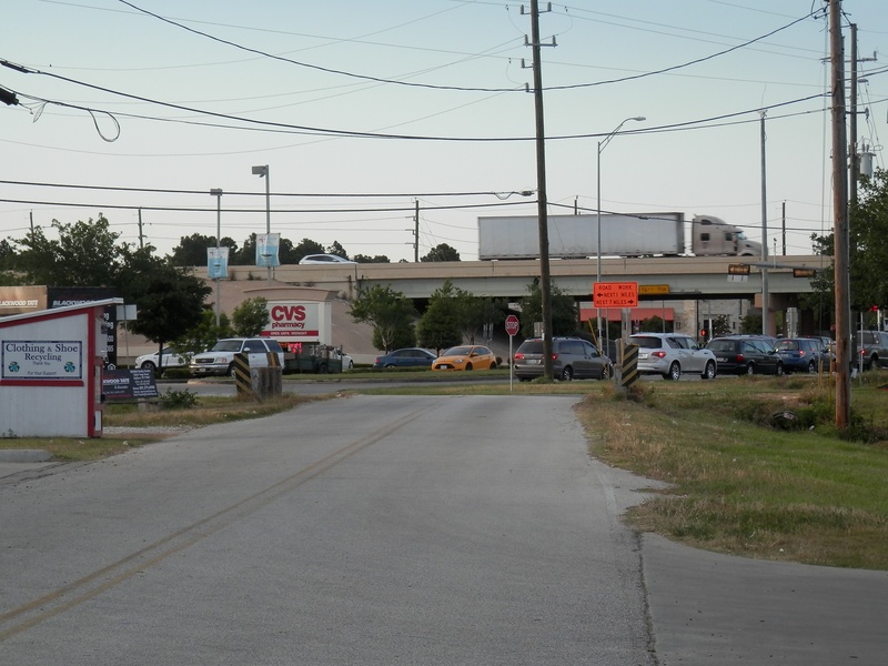 HH (218).jpg : Facing east along Hempstead Rd. at the 610 overpass, where the future direct connector ramp would be built.