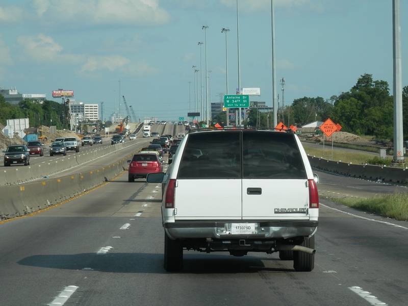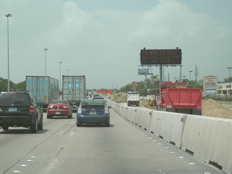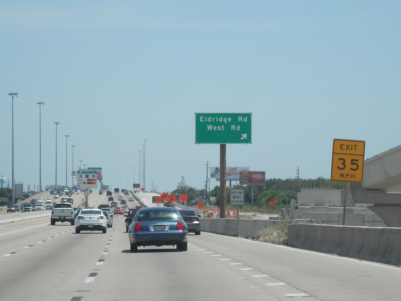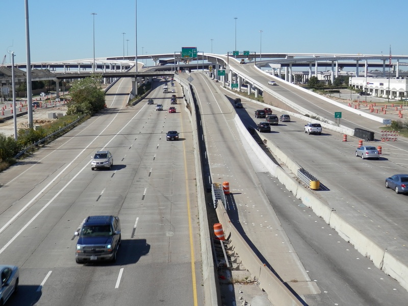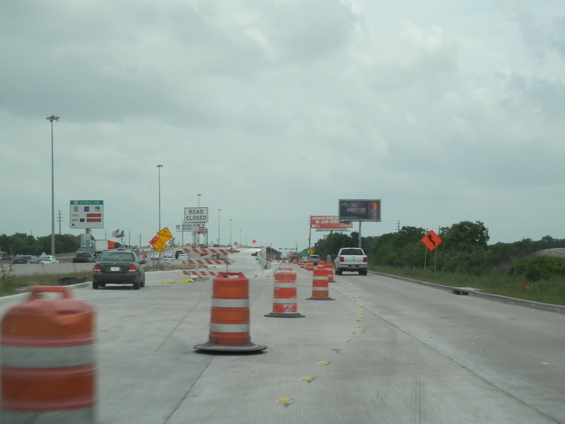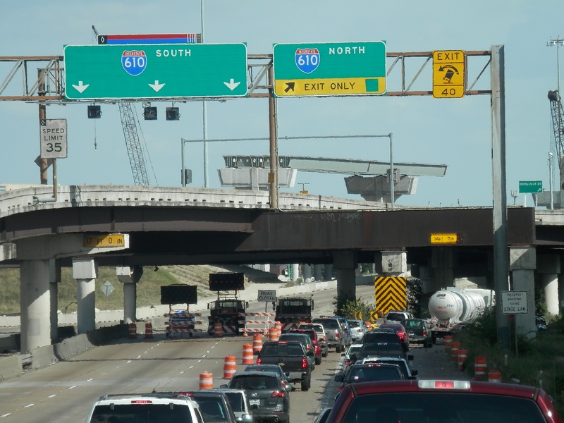 May 2015a 021.JPG : The eastbound main lanes approaching the 610 Loop. In this photo, the main lanes have been reduced to only two.