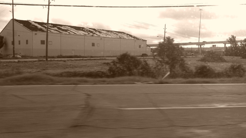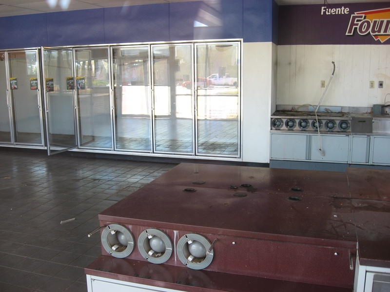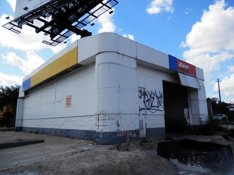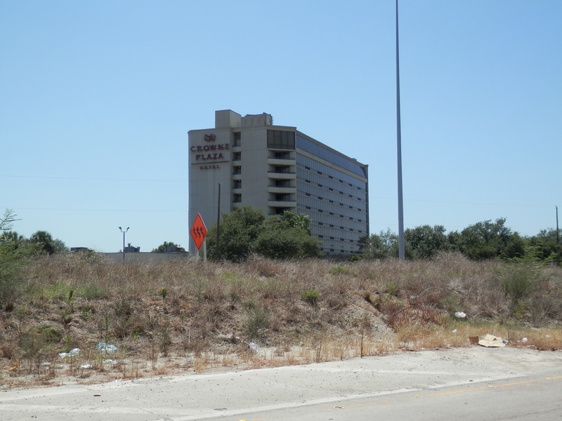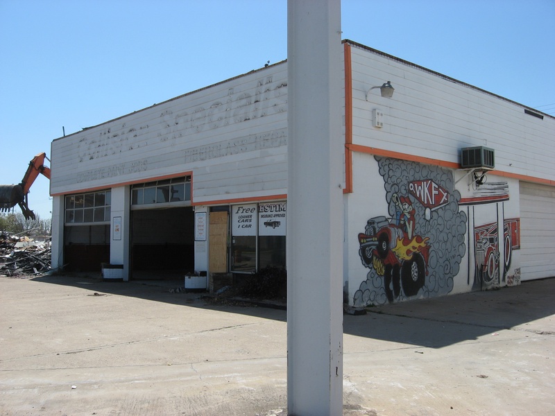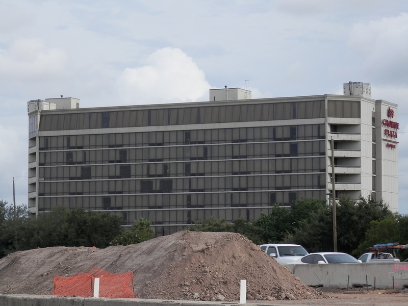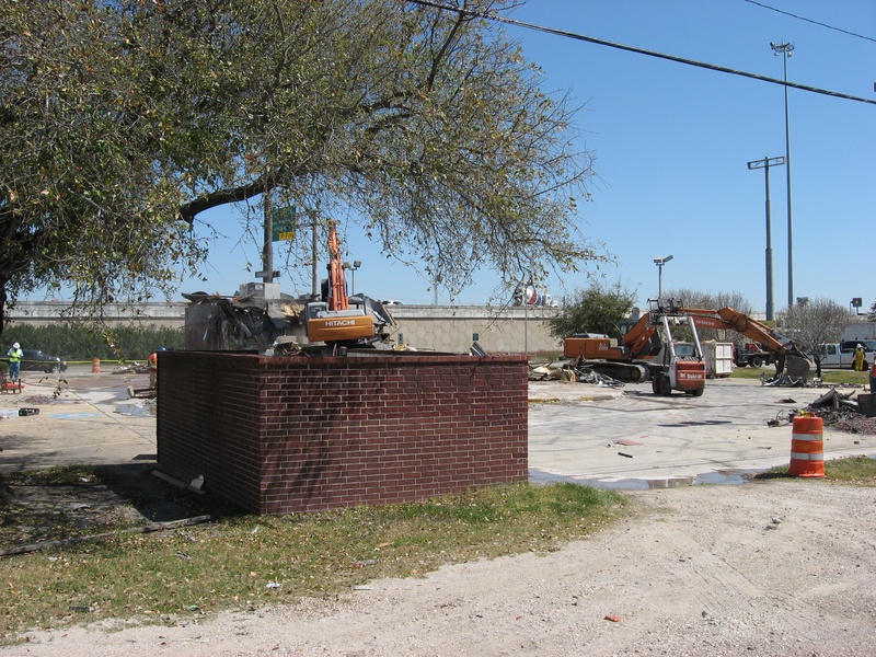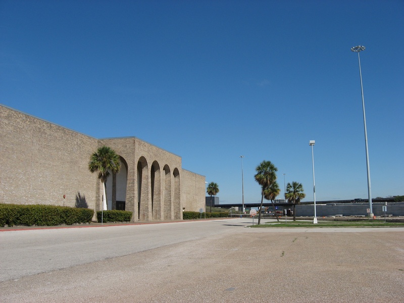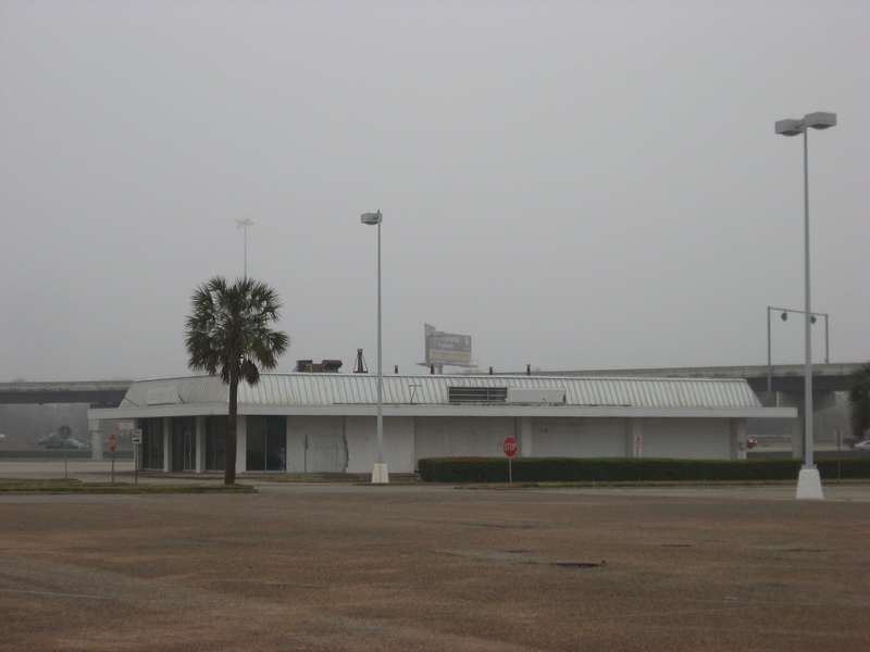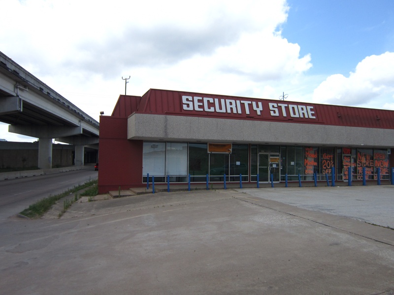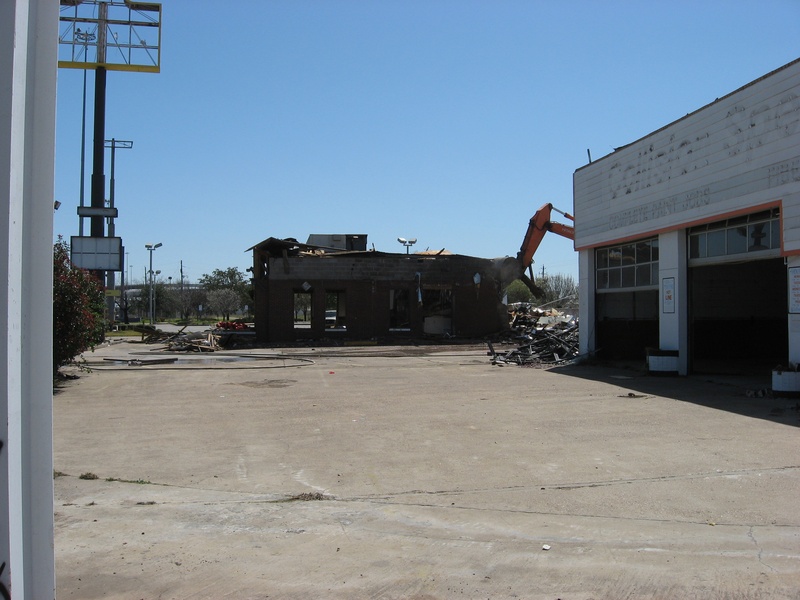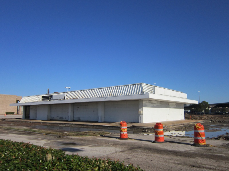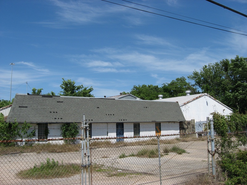 May 2012a 030.jpg : Facing slightly to the right of the previous photo, tenants of the building have started to relocate their businesses. Demeri's Barbecue opened a new location at W. 18th St. and the 610 frontage road on the inside of the loop.
