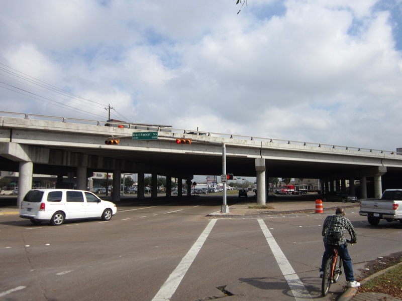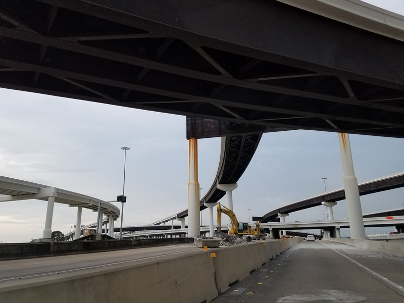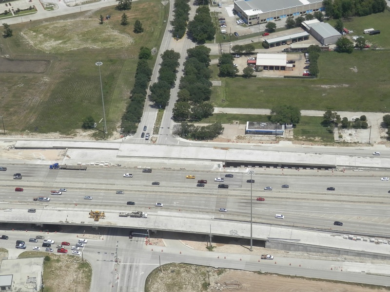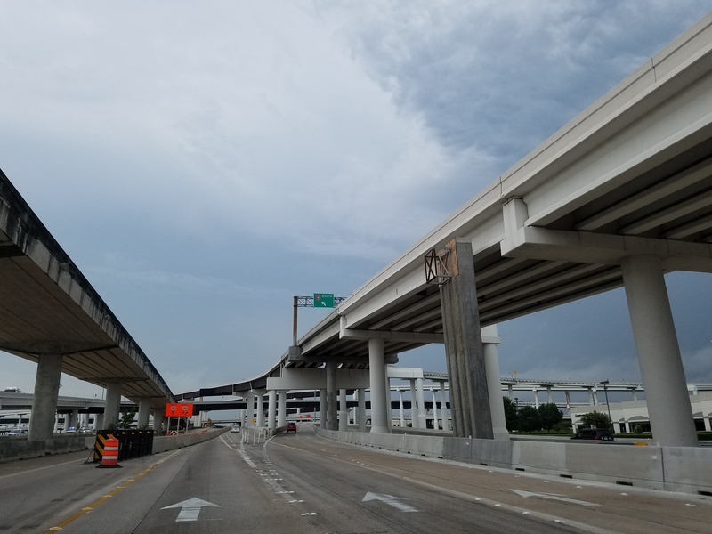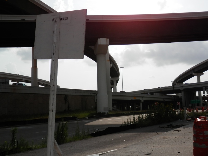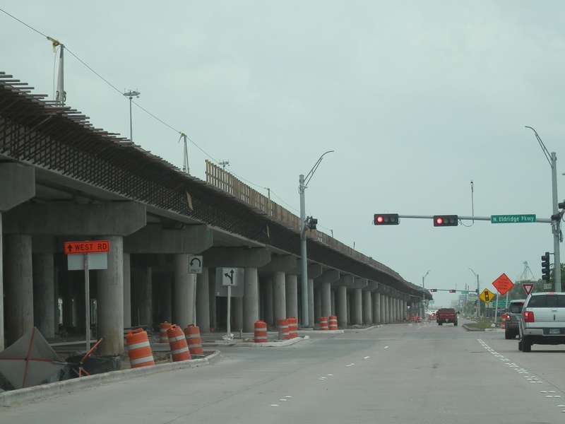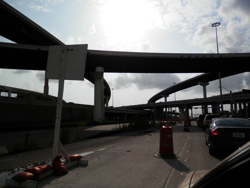 Aug 2014a 066.JPG : Another photo of the connector ramps over Hempstead Rd. to the 610 South frontage road.