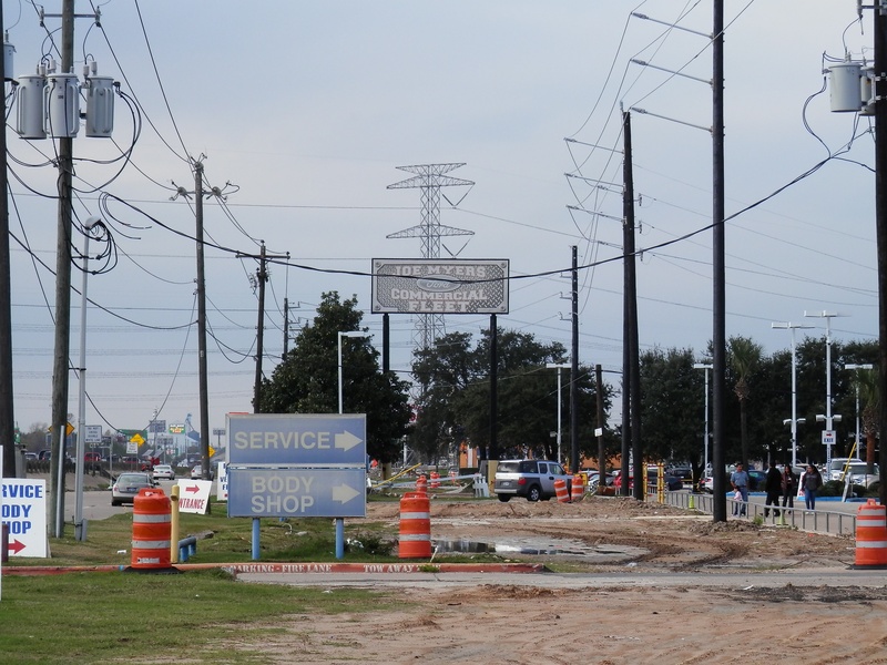 HH (122).jpg : Facing east along Hempstead Rd. towards Demeri's Barbecue, still open at the time of this photo. This is where the exit ramp from 290 to Hempstead Road would later come to a brand new intersection, and in this photo the direct connector ramps to 610 South have not been built over Hempstead Rd.