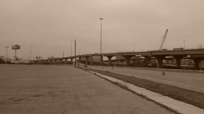 Aug 2014a 098.JPG : The 290 & 610 interchange from the inbound lanes during a weekend freeway closure, Aug. 24th.