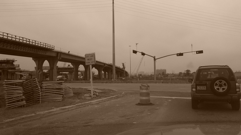 Jan 2015a 009.JPG : Facing south from W. 18th St., new flyover ramps to 290 west under construction.