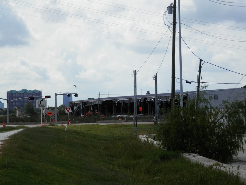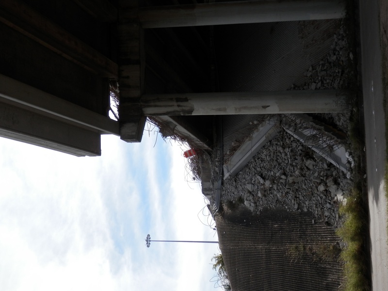 Oct 2013a 013.jpg : Zoomed in on the half-demolished warehouse that stands in the way of the new connector ramps.