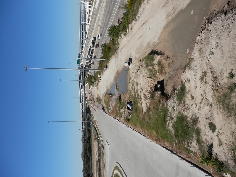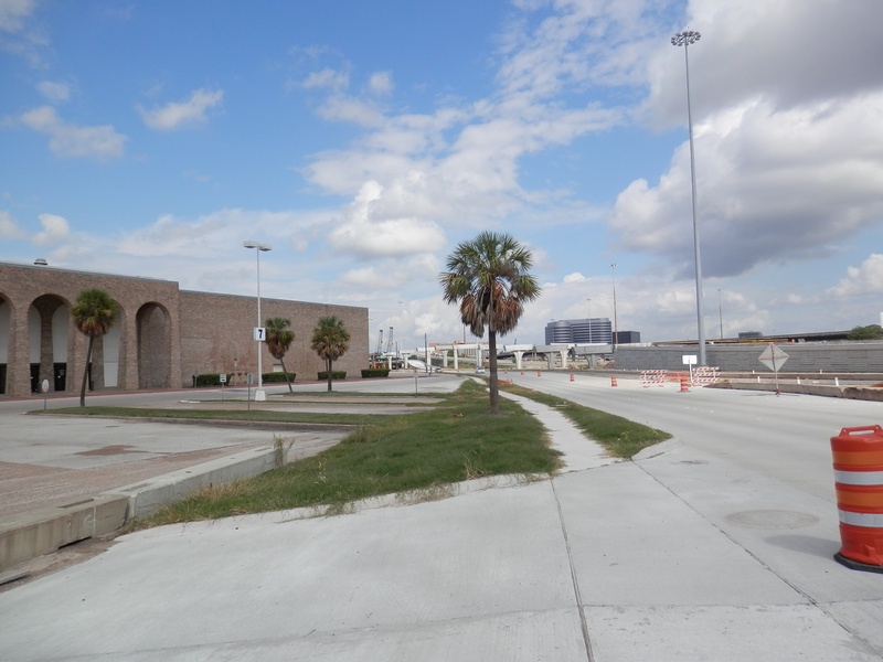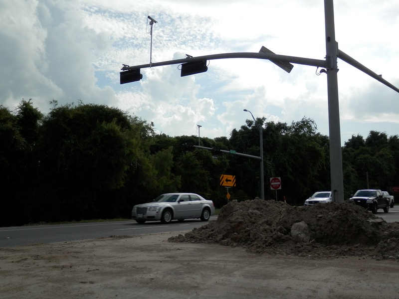 Sep 2012a 028.jpg : Standing on the new alignment facing the stub of the east exit drive, and the sickly palm trees.