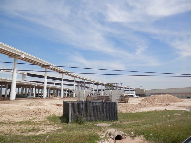 Aug 2014a 065.JPG : Construction work on the flyover ramps for the 290 & 610 interchange, viewed from mall parking lot.