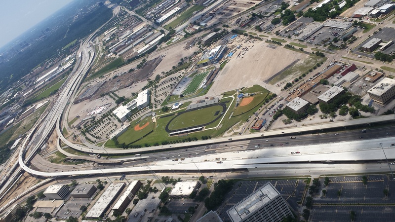 Jan 2014a 114.JPG : Aerial view of 290 frontage road and Delmar Stadium/Field House, Jan. 19.