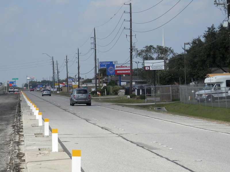 Mar 2013a 014.jpg : Facing north along the old 290 frontage road at Hempstead Rd. The old frontage road has been reduced to one lane.